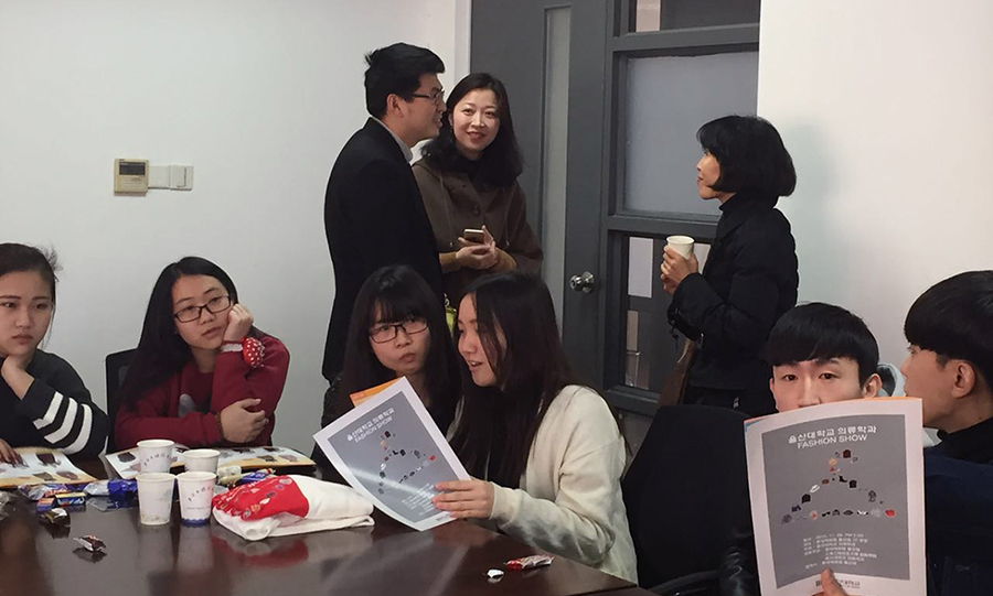 随后,服装学院的本科生与研究生代表还与蔚山大学的同学们就文化、生活和学习等方面进行了深入的交流,增进了彼此的相互了解。此次蔚山大学师生代表团来访是基于我院与蔚山大学生活科学院之间国际交流与合作协议的框架之下,展开的系列互访之一,对未来两校之间进一步的学分互认计划,联合培养本科生、研究生项目等都具有十分积极的意义。