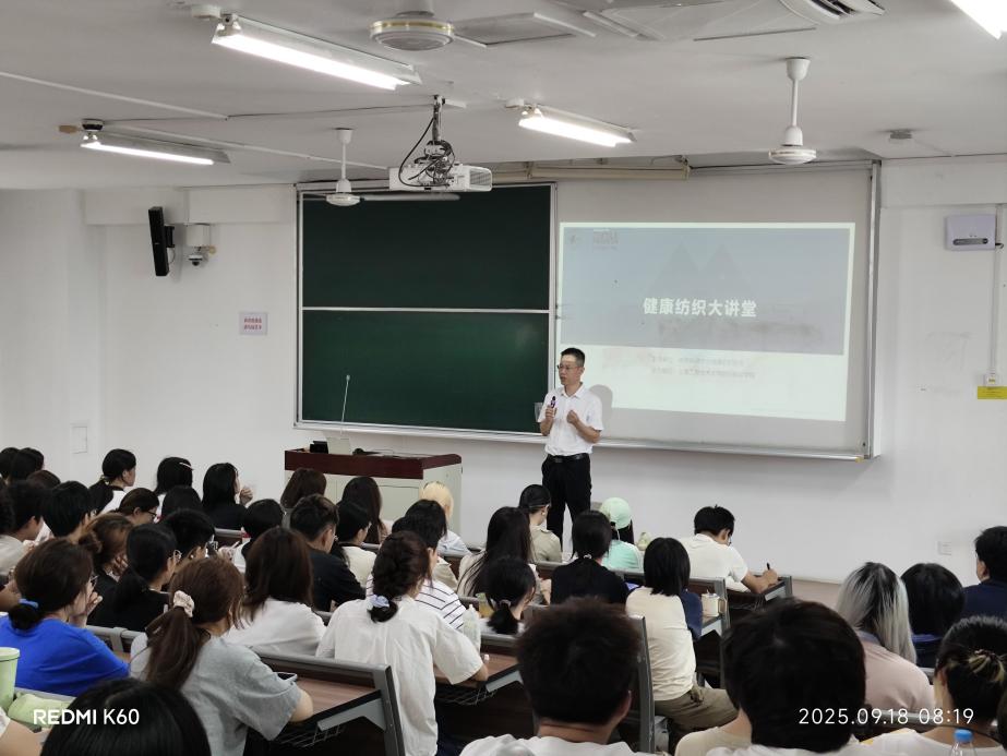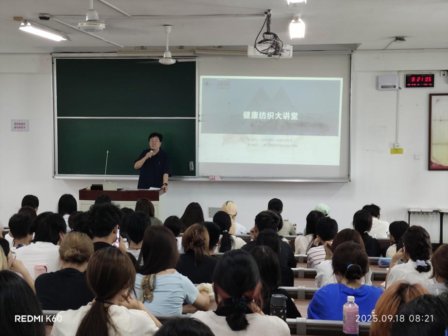 2025年9月18日,“2025健康纺织大讲堂”首讲在太阳成集团tyc9728开课,该活动由中国保健协会健康纺织分会与太阳成集团tyc9728共同举办,是《现代服装设计与工程导论》课程的重要实践环节,特邀行业专家为大一新生带来讲座。太阳成集团tyc9728院长辛斌杰讲话,强调以产业需求为导向,奠定“理论+实践”育人基调。太阳成集团tyc9728系主任孙光武、系副主任高伟洪,中国保健协会健康纺织分会会长许东等嘉宾出席,与100余名大一新生探讨健康纺织趋势与突破。