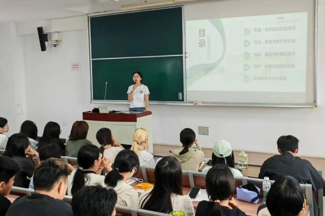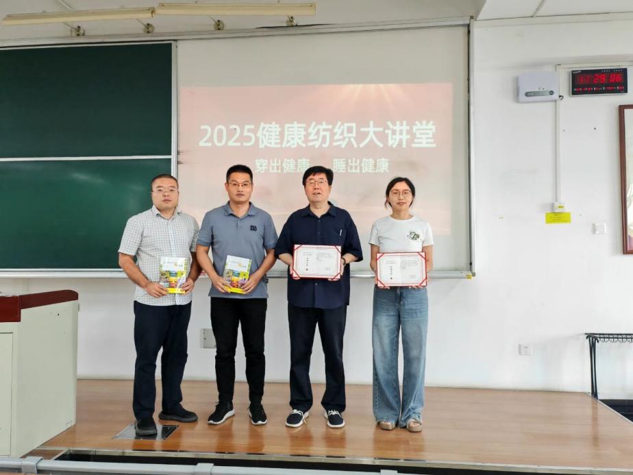 许东以“健康纺织与产业创新”为题,阐释健康纺织内涵与路径,指出纺织产业正转型,健康纺织产品有核心与功能趋势,企业应转向健康纺织生态构建,为人才提供舞台。北京洁尔爽高科技有限公司轮值总经理李静高工以“高科技健康纺织品:可见、可闻、可听”为主题,展示科技赋予纺织品生命力,介绍公司技术突破、参与制定的国家标准及军需应用历史。活动现场,孙光武为许东、李静颁发授课证明,洁尔爽公司赠书助力新生夯实基础。