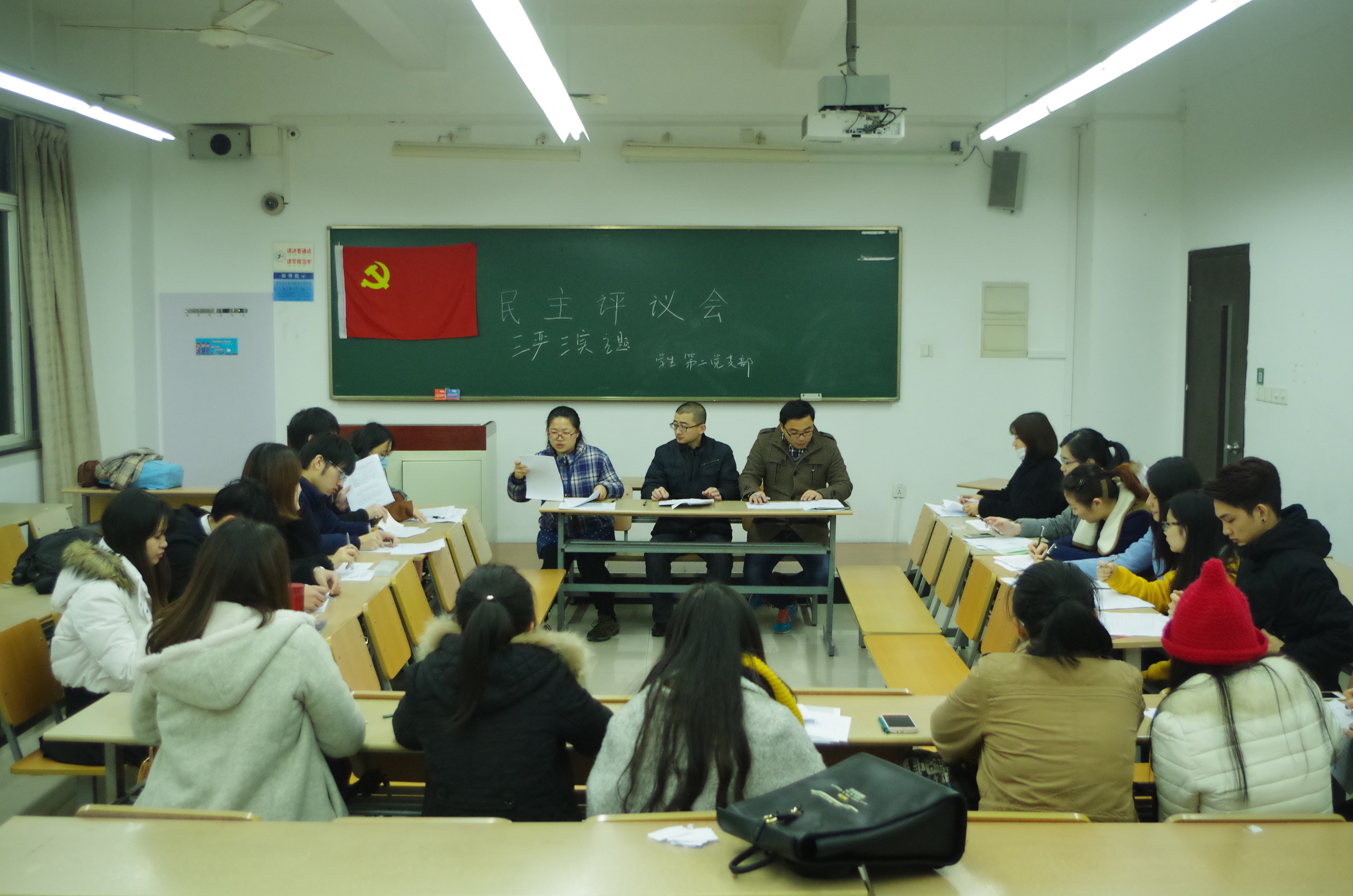 2015年12月24日下午,服装学院学生第二党支部在教学楼D102举行三严三实”主题组织生活会暨2015年度民主评议党员民主测评会,学院党委副书记、党委委员李扬老师、第二党支部全体党员及部分群众参与此次活动。会议由学生第二党支部书记崔诗晨主持。