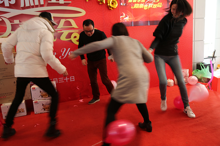 本次迎新联欢会的主题是好吃、好玩、好放松。联欢会由院工会承办,由倪洁诚、周诚两位老师担任主持,学院工会为本次联欢会做了精心准备并为广大教职工组织了丰富的团队游戏活动,有猜词拷贝不走样、乒乓球接力赛、麦管传真情、更有激烈的踩气球对抗赛,大家玩得不亦悦乎,可说乘兴而来尽兴而归。活动间隙,工会还为教师们准备了激动人心的幸运抽奖活动,感谢老师们一年的辛勤付出。