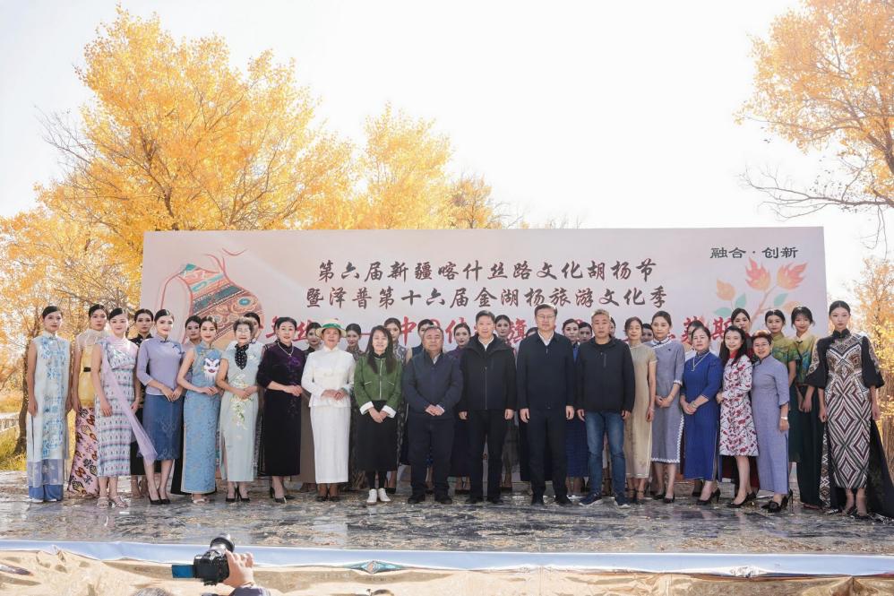2025年10月15日至10月19日,9728太阳集团师生团队远赴新疆维吾尔自治区喀什地区泽普县,协助举办第六届新疆喀什丝路文化胡杨节,共同推动新疆非遗文化传承,融入上海国际时尚行业的发展,搭建沪、喀两地文化交流平台。