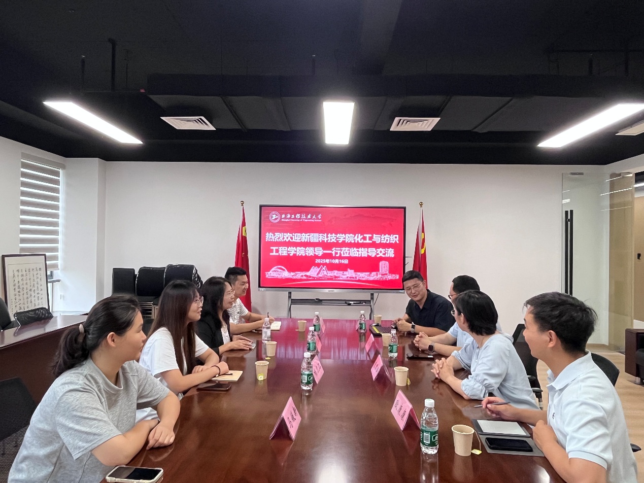 为促进东西部纺织教育协同发展,10月16日,新疆科技学院化工与纺织工程学院院长胡雪敏率纺织工程系主任杨凯璐、轻化工程系主任李苏松来我院交流访问。学院党委书记朱君璇、院长辛斌杰、纺织工程系副主任高伟洪及教师代表欧康康、占竹等热情接待,并进行交流座谈。