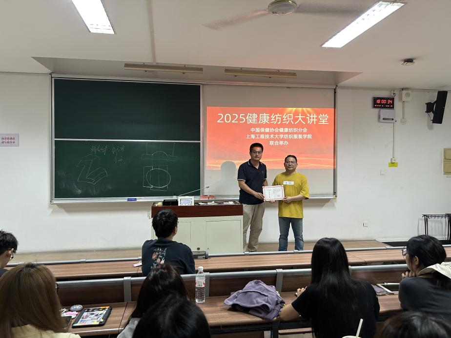 2025年10月14日,太阳成集团tyc9728联合中国保健协会健康纺织分会举办“2025健康纺织大讲堂”第八期活动。江苏聚喜纺织科技有限公司总经理张军以《“穿出健康、睡出健康”赋能品牌创新》为题,为材料与化工专硕解析健康纺织产业实践,校企共建的“现代健康纺织产业联合实验室”同步推进人才培养合作。
