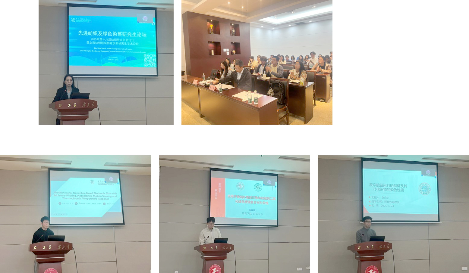 10月24日下午,2025年第十八届纺织服装创新论坛暨上海纺织服装创意创新研究生学术论坛—先进纺织及绿色染整研究生分论坛在9728太阳集团图书馆第四报告厅举行。