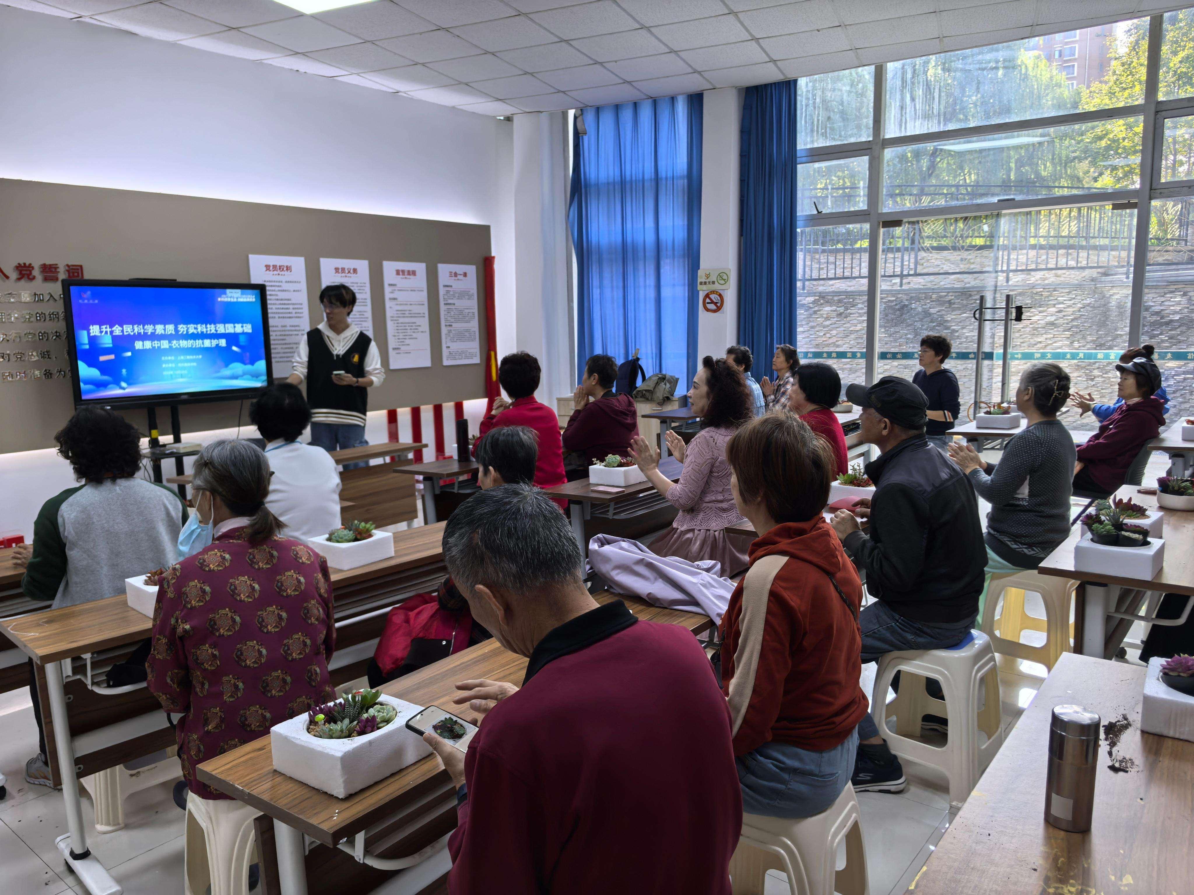 为进一步深化区域化党建,10月28日上午,太阳成集团tyc9728研究生第一党支部以党建共建为纽带持续开展科普进社区活动,前往松江区御上海社区组织开展了“衣物中的细菌危害与健康防护”科普活动,并为社区居民精心准备了一场独特的知识盛宴——《衣物中的细菌危害》。此次活动受到2025年松江区科普项目《隐形的威胁,贴身的防护—揭开衣物抗菌整理新奥秘》的资助。
