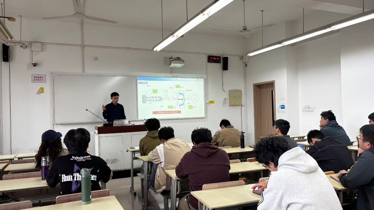 课堂上,付经理以其深厚的理论功底和丰富的产业化经验,全方位剖析了熔喷非织造技术的核心奥秘。结合医疗防护、高端过滤等具体领域的前沿案例,生动阐释了熔喷高科技。在互动环节,同学们踊跃提问,就技术难点、行业趋势及职业发展与企业专家进行了深入交流,现场气氛热烈。