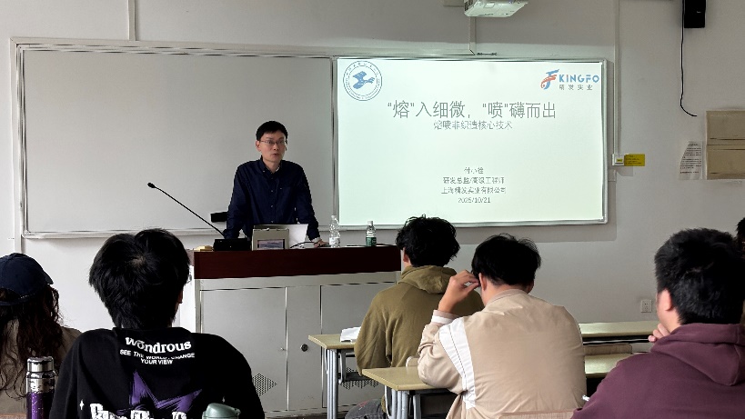为深化产教融合,让学生零距离接触行业前沿,2025年10月21日,太阳成集团tyc9728特邀上海精发实业有限公司付小栓经理,走进23级非织造专业《非织造学(下)》的课堂,为同学们带来了一场题为《“熔”入细微,“喷”礴而出:熔喷非织造核心技术》的专题授课。