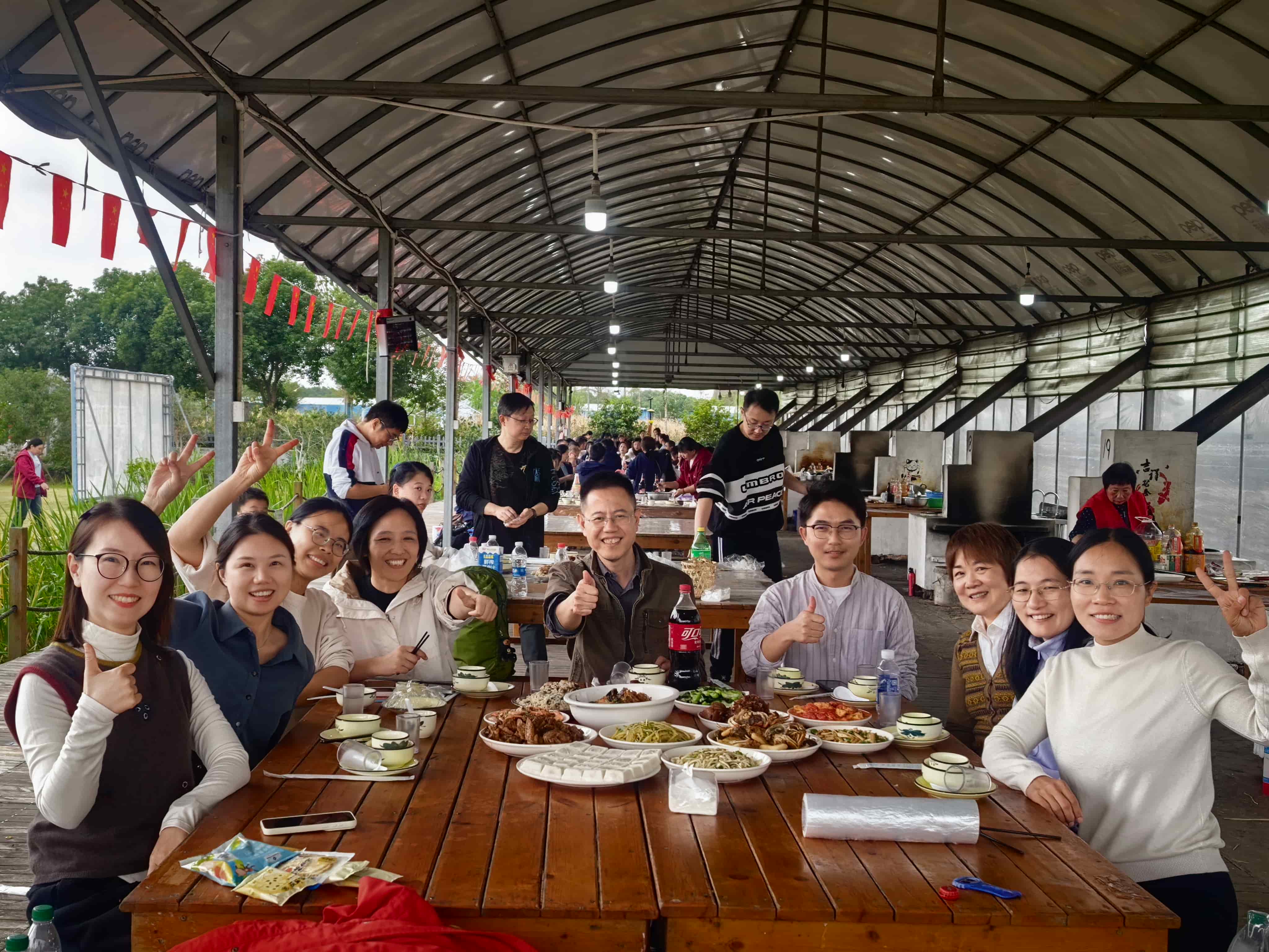 人间烟火气,最抚凡人心。根据活动安排,本次秋游围绕“野趣自煮”、“时令采摘”两大特色环节展开,体验传统农家文化,回归乡村田园,学院老师们热情高涨,迅速分工,撸起袖子到河里捉鱼、捉虾、到农场逮鸡、到菜园采摘应季蔬菜。大家自己掌勺炒菜做饭,每位老师都化身大厨,当一道道热气腾腾的家常菜端上桌,这份亲手劳作的成果变得格外香甜,大家围坐在一起分享劳动成果,回归自然、享受宁静。