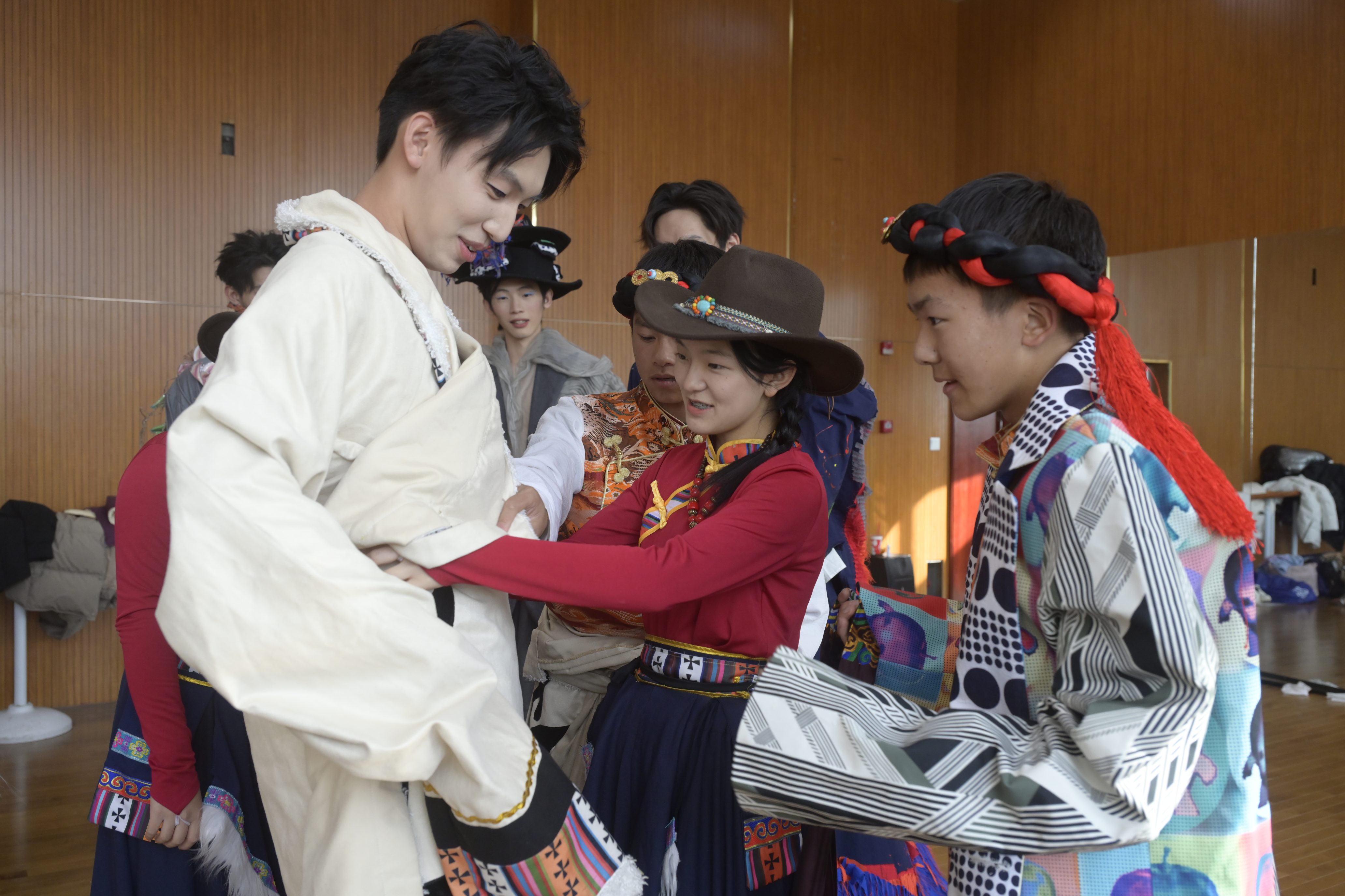 藏式服饰的华丽银饰与刺绣,与海派服装的简约线条相互映衬,两种风格在彼此身上焕发新活力。“这种交流太有意义了,我们在藏族服饰中看到了自然与信仰的融合,也让当地同学感受到现代设计的魅力。”参与活动的表演专业学生顾舜文感慨道。