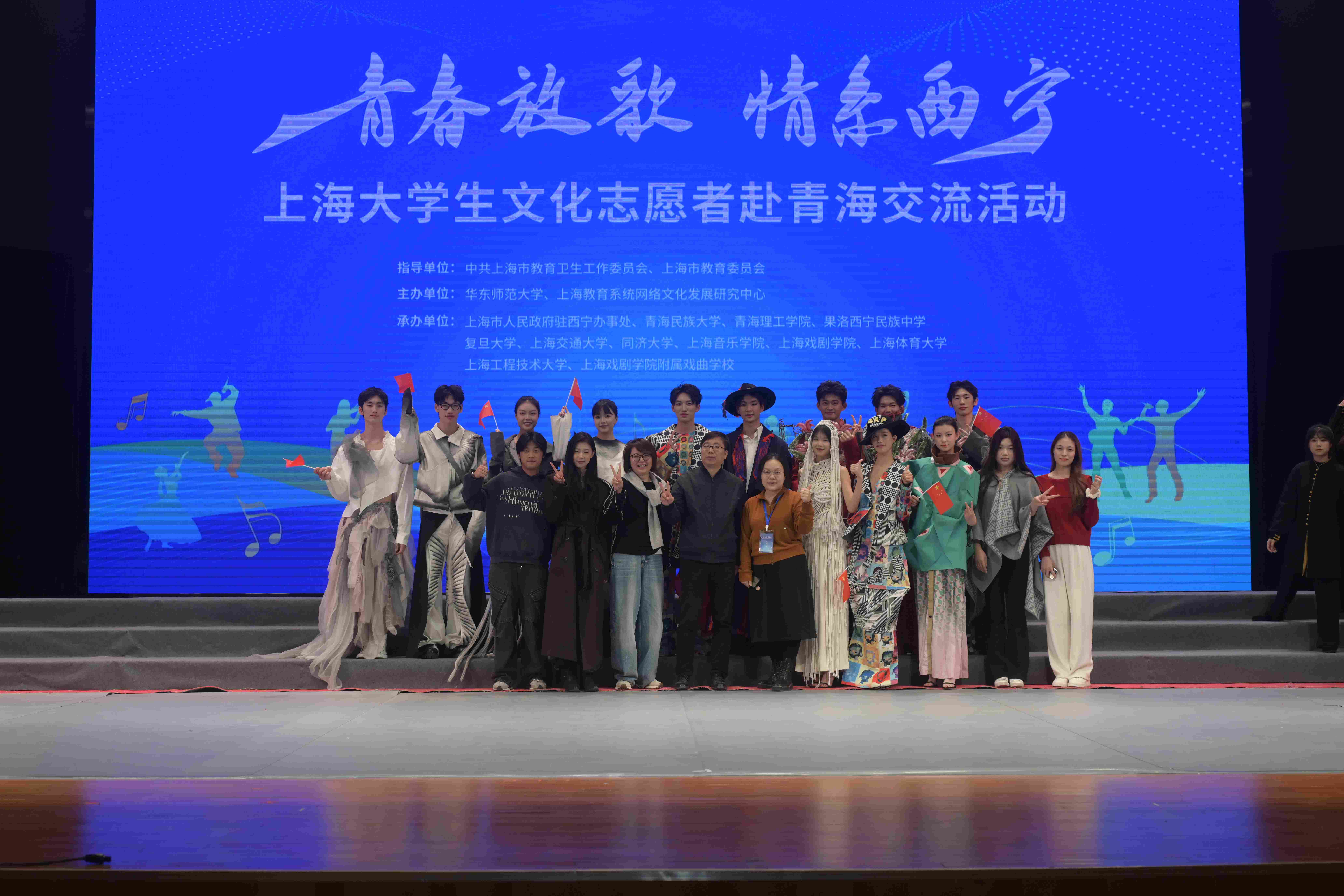2025年11月12-14日,“青春放歌 情系西宁” 上海大学生文化志愿者赴青海交流活动在西宁举办,活动分别在果洛西宁民族中学、青海民族大学开展。本次活动由中共上海市教育卫生工作委员会、上海市教育委员会指导,华东师范大学上海教育系统网络文化发展研究中心主办,上海市人民政府驻西宁办事处、青海民族大学、青海理工学院、果洛西宁民族中学、复旦大学、上海交通大学、同济大学、上海音乐学院、上海戏剧学院、上海体育大学、9728太阳集团、上海戏剧学院附属戏曲学校共同承办。我校表演专业学生带来的时装秀《风尚启程·织回西宁》惊艳全场,而秀后沪青学子间别开生面的服饰交流,更让海派创意与藏族风情碰撞出绚丽火花。