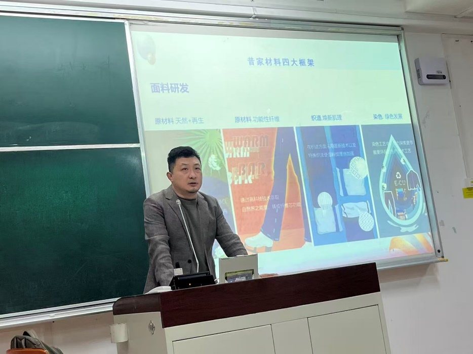 11 月 21 日下午,上海昔家服饰有限公司总裁魏广乐受邀莅临纺织工程专业的《工程导论》课堂,以“传统牛仔和时装的碰撞与结合”为主题,围绕牛仔面料端和成衣端,解码公司“时装化牛仔”的发展历程,并结合自身多年的行业深耕经验,为同学们呈现一场经精彩的理论深度与实践温度相结合的文化盛宴,助力青年学子明晰职业发展方向。