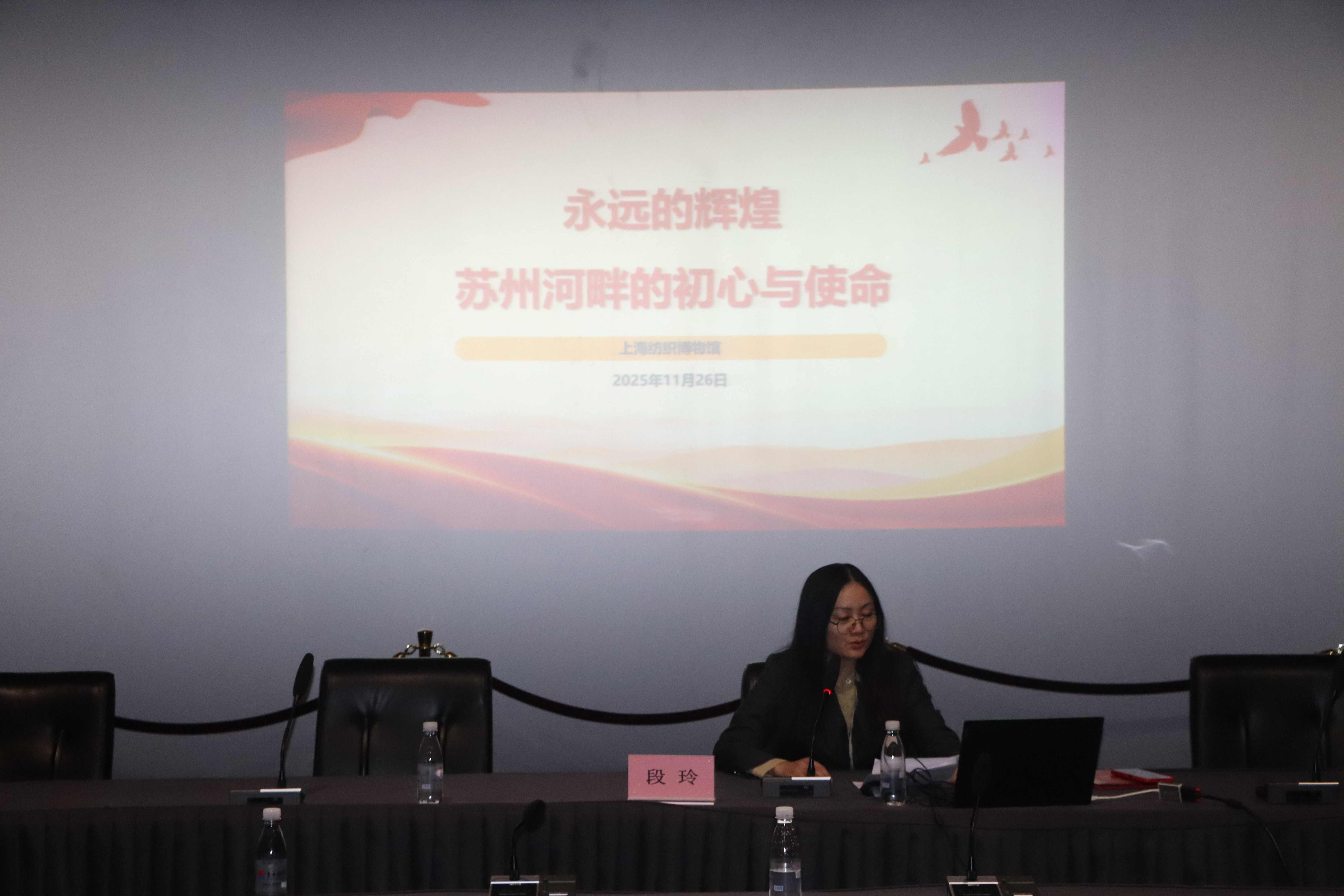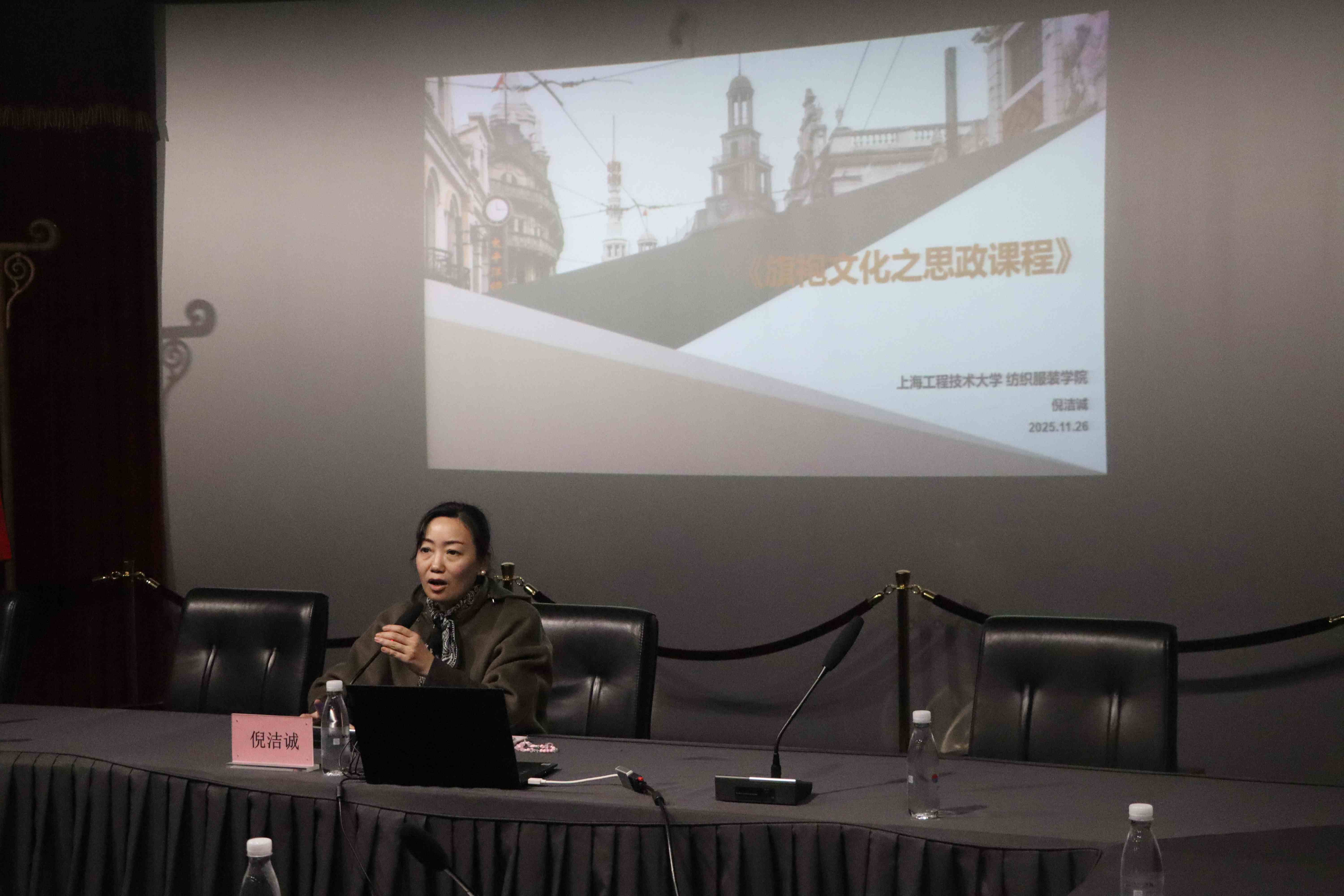 随后,师生参观了“历程馆”“科普馆”等展区。在思政课分享交流环节,学院倪洁诚老师从旗袍服饰演变切入,解读纹样中的“四君子”精神与家国情怀。博物馆段支部书记玲老师讲述上海纺织工业百年历程中的实业报国精神与红色基因,诠释“一针一线皆使命”的深刻内涵。