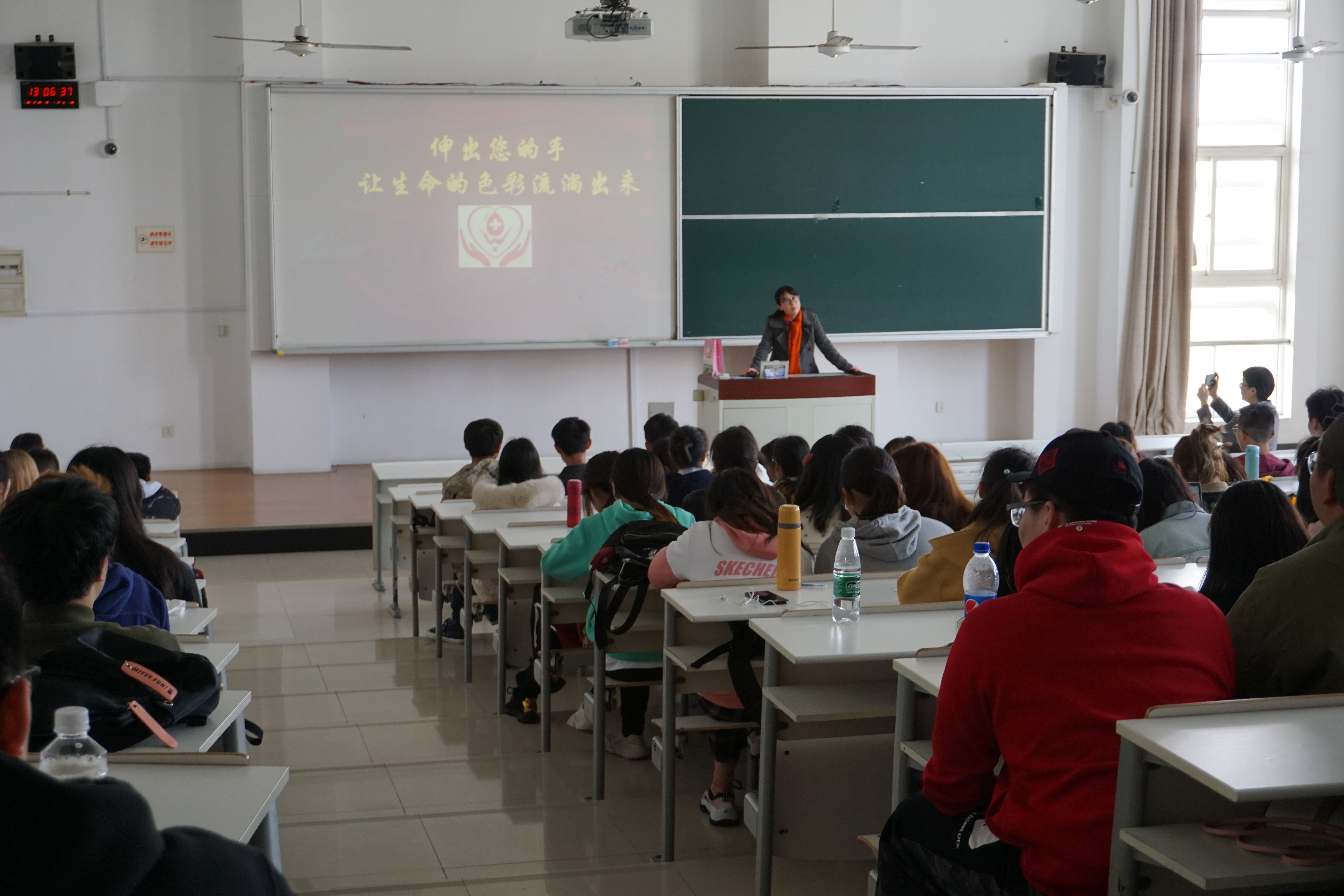 首先,王文仙副主任做了《伸出您的手,让生命的色彩流淌出来》的讲座,用科学严谨的态度,向同学们介绍了血液常识、献血对身体的益处以及献血应注意的事项等内容。随后,大四的学生党员、有多次献血经历的李豹和李榕诚两位同学向大家分享了自己对献血的理解以及自身的献血经历。最后,学院党委副书记谢志霞讲话,她强调一个人的价值不仅在于实现个人的理想,更在于为社会做出贡献。无偿献血是一项既能拯救他人生命、又有益自身健康的公益活动。作为新时代的大学生,为社会奉献一份爱心是我们的责任和义务,是承担青年责任的直接体现。她向广大青年学子发出倡议,号召大家发挥团结友爱、无私奉献、救死扶伤的精神,用自己的青春热血,践行雷锋精神。