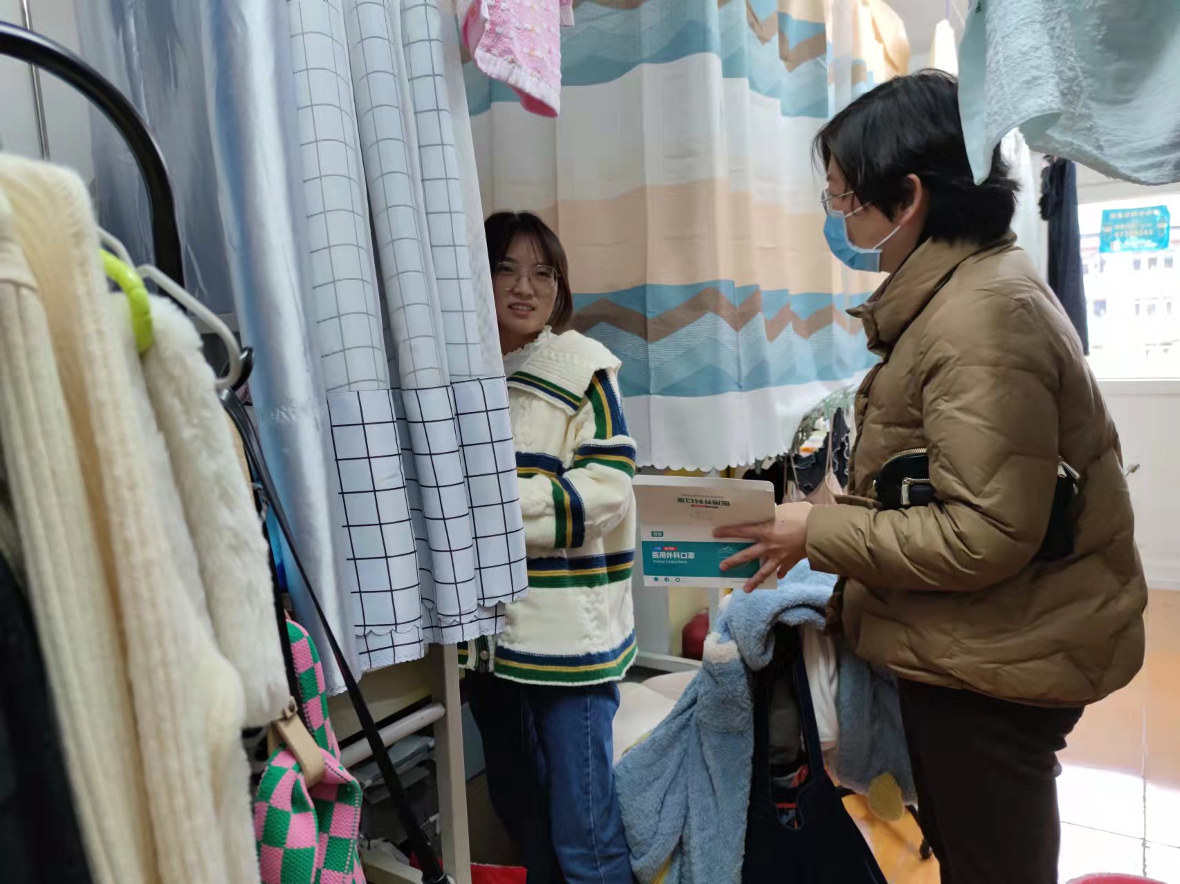 党委副书记谢志霞在走访毕业生宿舍时,针对学生的实习就业等问题提出关心。一一询问同学们目前就业现状及学习生活状况,并对同学们提出的疑问做出相关解答。她提醒同学们要提高个人疫情防控意识,严格遵守学校的各项防疫规定,坚决守牢疫情防控底线。