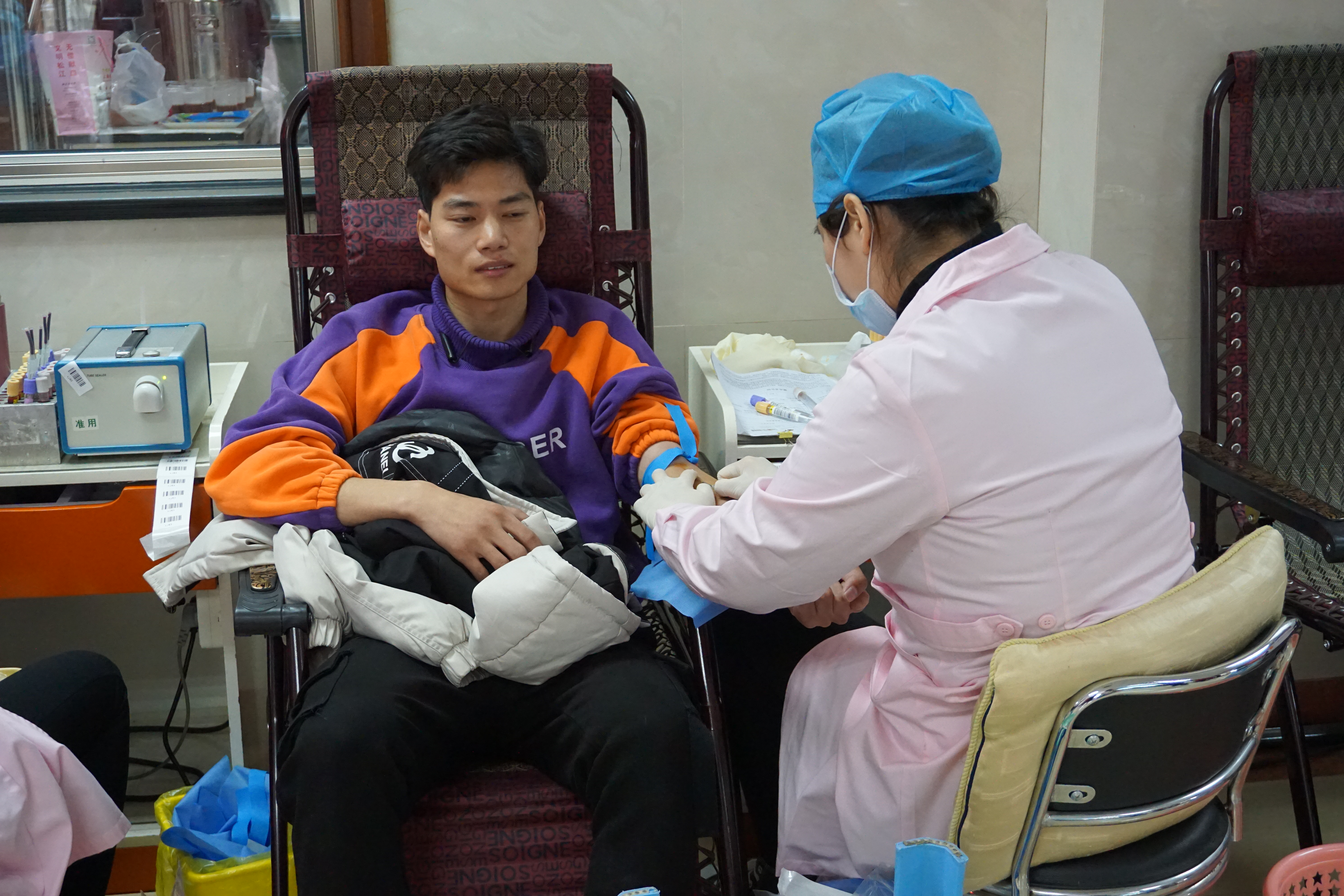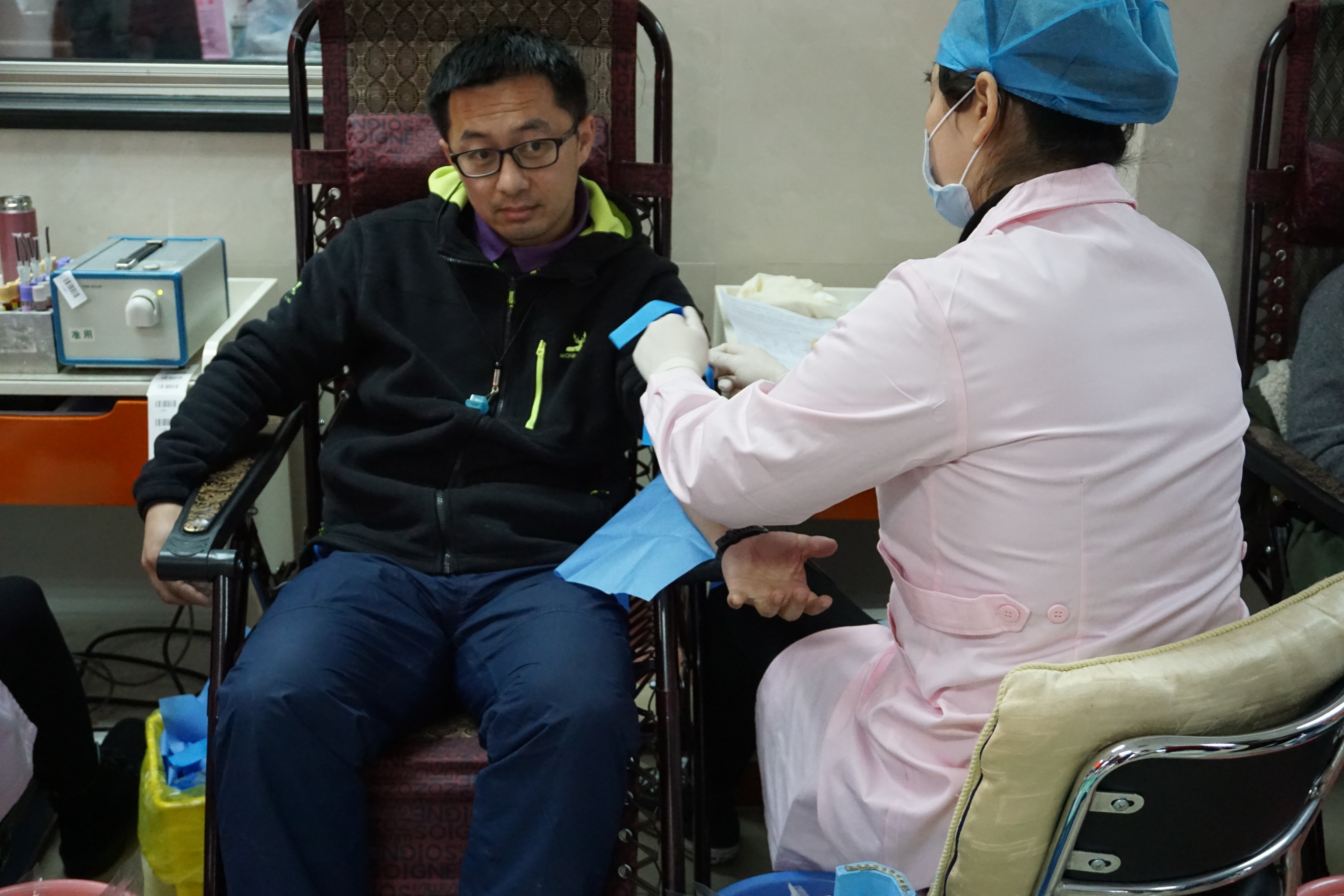 在献血现场,大家认真填表、体检、化验、抽血,在医护工作人员的指导要求下井然有序的进行。他们每个人的脸上洋溢着快乐的笑容,切身感受到了奉献爱心带来的温暖与幸福。在一片轻松而愉快的氛围中,他们完成了献血这一光荣之举。