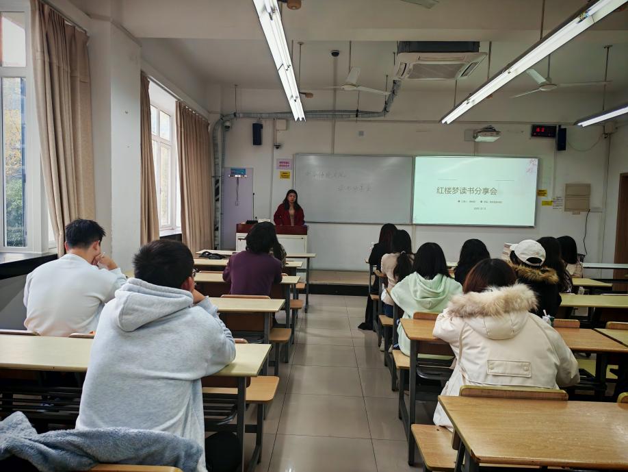 蒋莉凤同学聚焦《红楼梦》,别出心裁地以书中的谜题为切入点。此次分享蒋莉风同学没再对书中的故事情节做过多的讲述,而是从故事情节以外的其他内容展现了自己对《红楼梦》这本书的思考,并通过书中的批注,学者的看法以及对书中相关情节的仔细品味和思考,证明了自己的观点,不仅展现了自己对这本书的思考,同时也让同学们对《红楼梦》这本书有了新的理解与感悟。本次中华传统文化读书会,既是一场鲜活生动的阅读分享,更是一次沉浸深入的文化寻根。上台分享者引经据典、剖析深刻,台下同学凝神聆听、思索共鸣,在经典的缕缕书香中,共同触摸中华文脉的深厚底蕴。