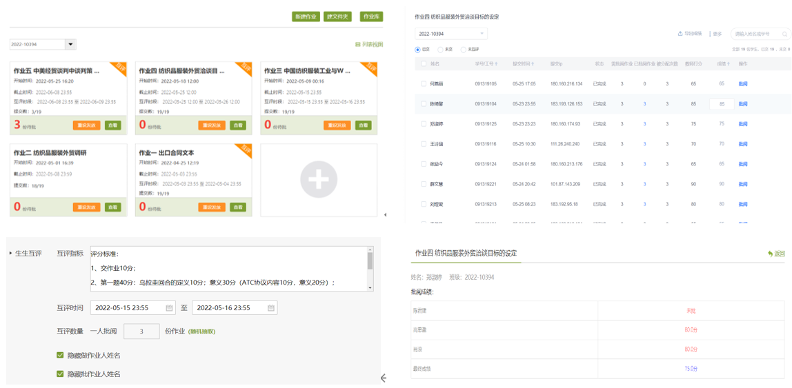 增加作业互评,有效减少教师压力。作业互评能够提高学生提交作业的积极性,以主人翁的角色和责任心参与教学,协助教师完成每一次的作业评价,不但使教师的工作量和压力减少了,也能让学生从批改作业的过程中向其他人借鉴好的答题方法,对于不好的作业给予客观评价。有了作业互评,学生们提交作业更加积极了,很多同学表示这种方式很有意思,通过评价使他人进步很有成就感,学习也变得更有意义。