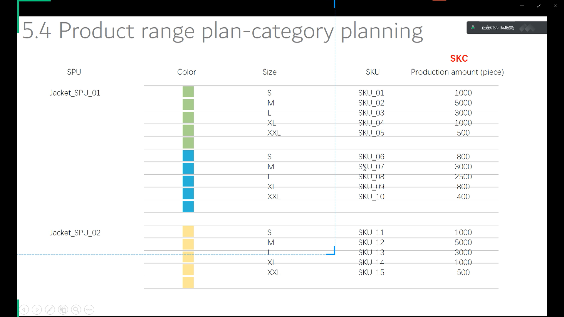 经教学实践,学生通过线上教学也能很好地达成预期的教学目标,已完成第一阶段项目实践成果的展示、评价与反馈。具体而言,包括品牌调研(品牌基础信息调研、往季产品调研等)、市场调研(竞争品牌市场情况调研、流行趋势调研等)、主题企划(主题故事、设计要素企划等)、产品架构规划(面料架构、产品品牌规划、上货波段规划等)。第一阶段评价方式采取“1+N”的形式,即教师与多个品牌企划小组同时对展示小组进行分项打分,最终结果取“1+N” 形式的综合成绩。此外,每个品牌企划小组汇报完成后,教师会即时点评,针对实际制作过程中有疑问的部分进行讨论与解答。这样展示、反馈与评价方式可以更好地提升学生自主性学习的动力,激励学生不断精进品牌服装设计与企划的能力,从而达成本课程复合型能力培养的目标。