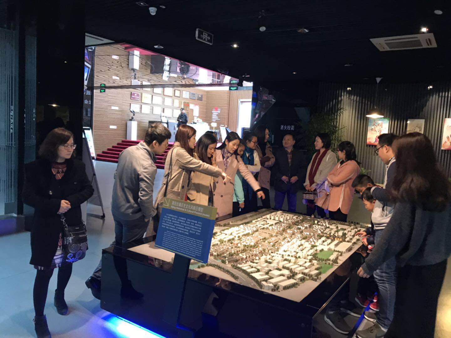 老师们边走边细细欣赏各类展品,有千年松江府城壁挂模型、松江名人录多联液晶墙、松江新城、佘山国家旅游度假区等区域的模型,同时还有中山中路十里长街多媒体长卷、松江五塔、广富林古文化等遗迹的史料及建筑模型,参观内容涵盖了松江的历史、科技、文化、教育、卫生、农业、旅游以及现代工业等内容。驻足于松江新城、老城历史变迁与规划的展示沙盘,松江城区的沧桑巨变和未来发展的独特魅力呈现眼前。通过此次参观,老师们不仅领略到松江的沧桑巨变和文化积淀,同时也感受到了历史和时代赋予松江与学校的重托与使命。