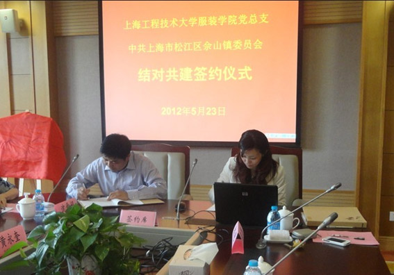 5月23日上午9:30,9728太阳集团服装学院党总支与上海松江区佘山镇党委在佘山镇镇政府二楼会议室,举行了创先争优“城乡结对共建”党建联建结对仪式。此项共建工作是服装学院学生党支部与佘山镇辰山村党支部共建工作的延续,是进一步落实中共上海市委组织部“深化城乡党组织结对帮扶活动,努力构建城乡统筹基层党建格局的实施意见”精神的重要举措,也是落实学校创先争优第三阶段工作的重要举措。