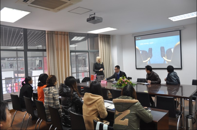 英国德蒙福特大学服装纺织学院院长Julie King教授首先与服装学院青年教师、研究生等就英国纺织服装设计与教育做了专题讲座。然后双方进行了会谈。胡守忠院长首先向英国德蒙福特大学服装纺织学院院长Julie King教授一行的到访表示了热烈的欢迎。随后他向来访的客人介绍了我院的办学历程、办学特色及主要的学科专业布局。他指出两院在办学理念、专业设置等方面都有共同的相似之处,为两院的合作奠定了很好的合作基础,相信今后两院的合作与交流一定会卓有成效。