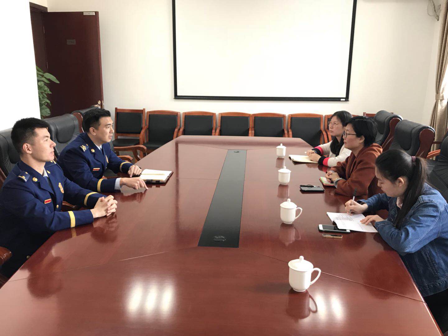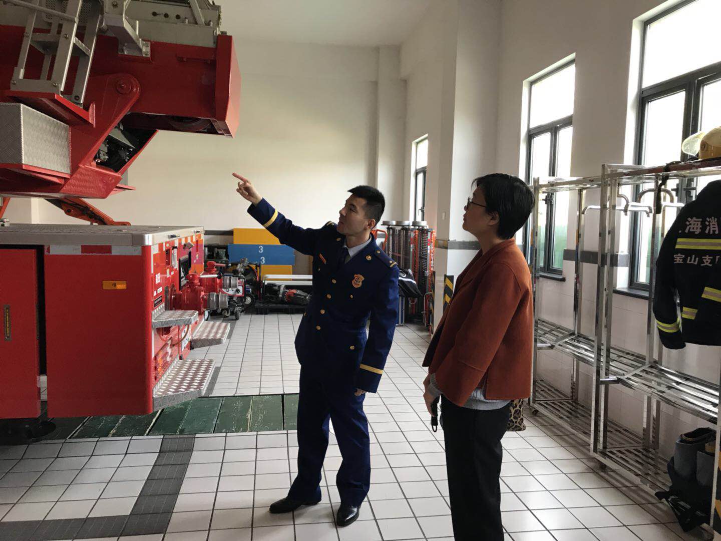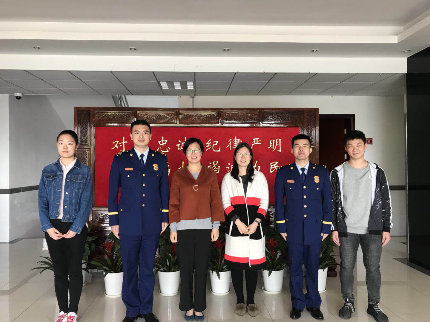 2019年4月12日,服装学院党委副书记谢志霞带领校友工作辅导员沈智莉与两名学生代表前往了上海市宝山区公安消防支队,采访2011级服装学院纺织工程校友、上海市消防总队宝山支队石洞口中队副中队长——李亚伟。宝山消防支队政治处副主任任玉与李亚伟校友共同接待了谢志霞副书记一行。
