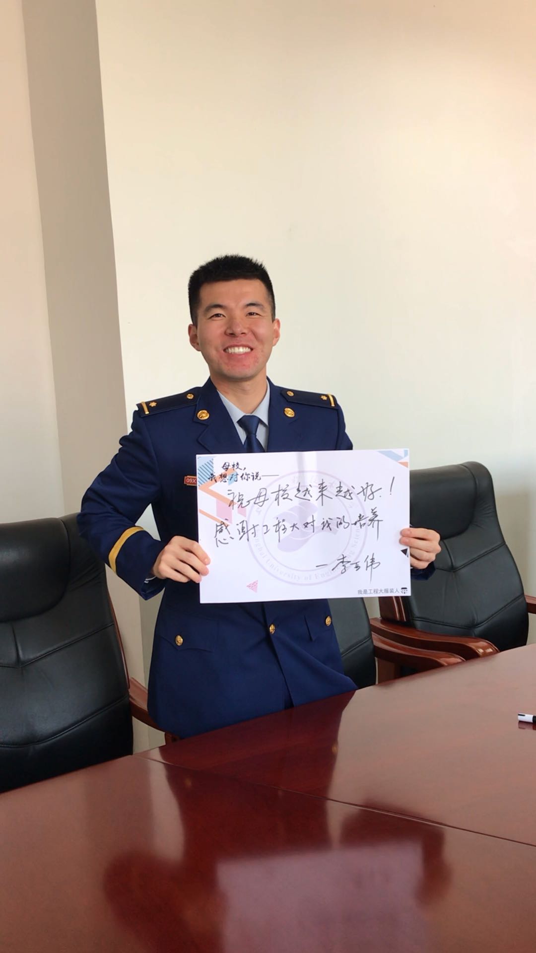会上,任玉副主任简要介绍了宝山消防支队的总体情况,肯定了李亚伟同志从参军入伍,到考取军校,以及在支队的优秀工作业绩和突出表现,李亚伟同志曾经在部队中荣立三等功,并以全总队第二的成绩考入武警学院。任玉副主任同时也感谢工程大作为李亚伟的母校,对他的悉心培养。