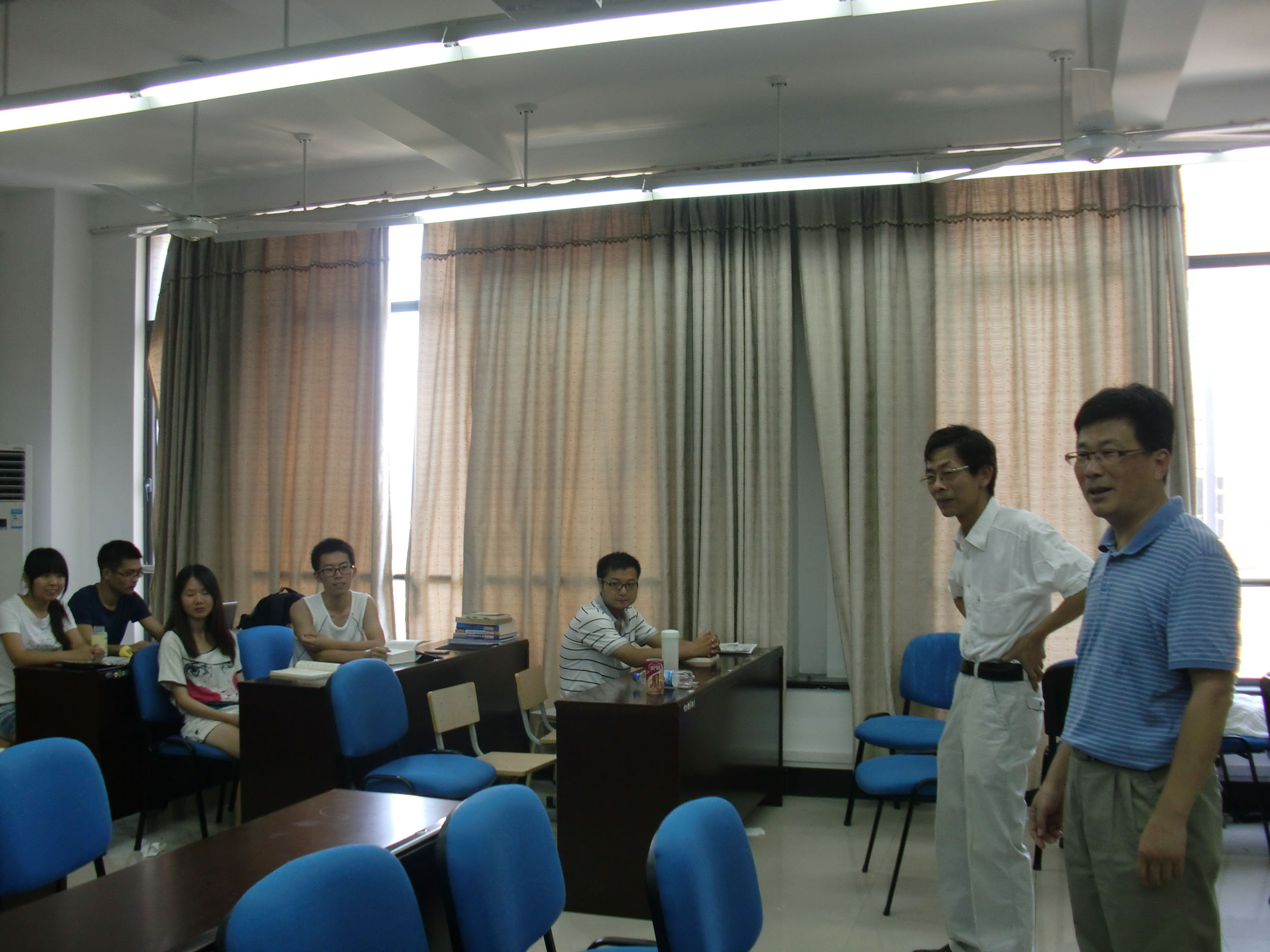 院领导对暑期留校研究生不怕炎热,认真做好实验和设计工作的科研态度以及全身心投入学习的作风表示了肯定,同时还了解了研二同学科研进展和硕士论文完成情况,希望大家以认真踏实的工作作风和刻苦专研的精神顺利完成论文工作,并能经常和导师保持联系和沟通。