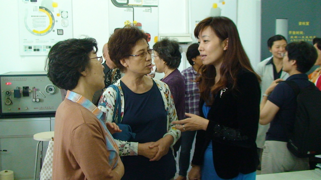 客车抵达松江校区后,院党委书记袁蓉及诸位老师立即迎了上去,欢迎各位离休教师的到来。在袁书记的带领下,各位离退休教工先后参观了服装舒适性面料研究工作室、服装动静态测量及量身定制工作室、服装工程及工艺研究工作室、服装艺术设计研究工作室。参观过程中,离退休的教工时不时地发出感慨,感叹服装学院工作环境变好了,实验设备也越来越先进了,由衷地为学院近几年的快速发展而欣喜。