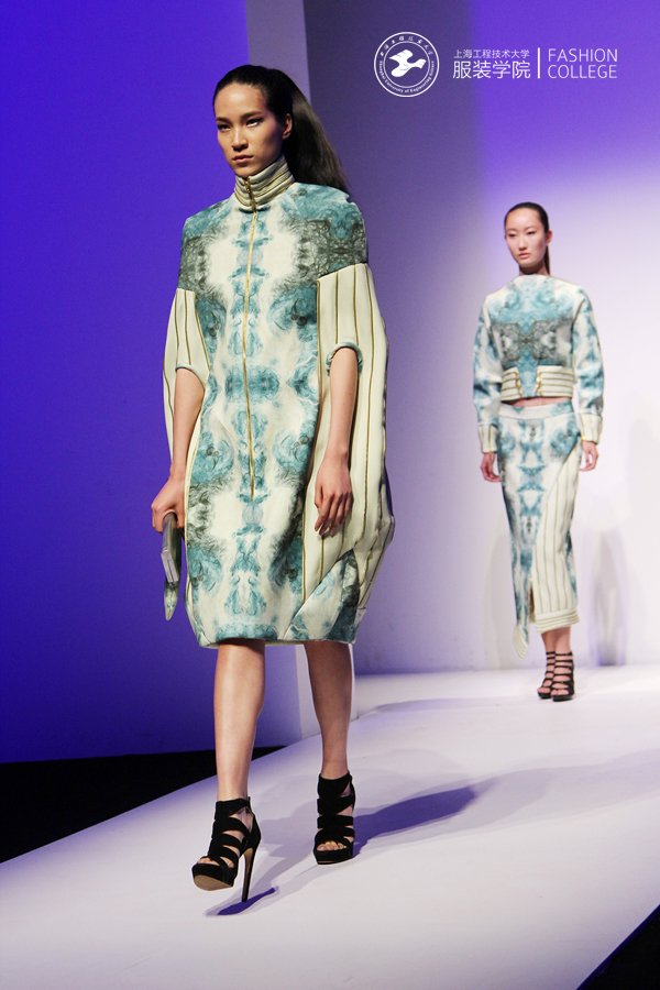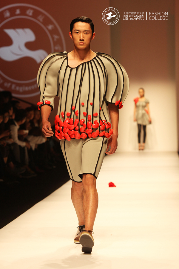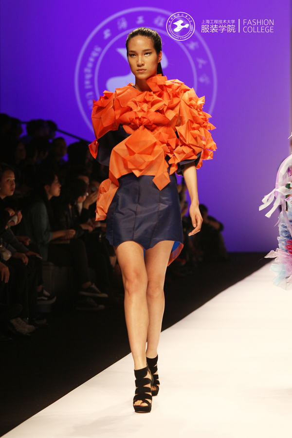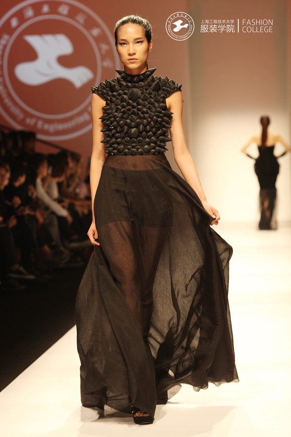 我服装学院作为上海市重要的从事时尚研究与教育的专业院校,历年来依托上海时装周这一平台,展示学院师生优秀作品以及在服装教育产学研方面取得的成果,竭力为打造上海国际时尚之都做出贡献。作为教育部设定的首批开展卓越工程师教育培养的高校,我院依托“上海创意产品设计工程技术研究中心——服装创意设计平台”,在教学中强调理论与实践相结合,注重培养学生创新思维及创意表现的实践能力。本届毕业设计作品均在教师的精心指导下由学生亲自动手剪裁制作完成,体现出学生们充满张力的创意与极高的完成度。