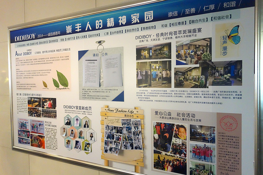 作为系列活动之一,我们于2014年6月中旬参观走访了迪丰集团,迪丰集团有限公司始创于1990年,总部位于上海市青浦区,是一家集国际高档商务休闲男装系列营销管理、研发设计、生产制造、物流配送及国际知名珠宝、饰品经营等为一体的大型现代化企业集团。多年来,集团成功推出的自主品牌DIDIBOY已在全国各大一线城市的首要商圈成功设立200余家专厅,占据着国内高级男装市场的重要地位。同时,凭借强大的综合实力、完善的特许经营网络、非凡的品牌操控能力,迪丰集团博得了国际各大知名品牌公司的青睐与信任,成为意大利顶级服饰品牌VERRI、DAVID MAYER NAMAN(大卫麦野),意大利珠宝国际顶级奢侈品牌DAMIANI(达米阿尼)及意大利饰品品牌BLISS,意大利VERSUS(维尚士)咖啡、大马可西餐等国际知名品牌的大中华区总代理。年服装生产能力达50余万套(件),远销法国、意大利、俄罗斯、美国、韩国等十几个国家。