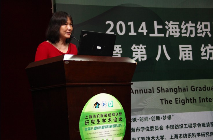 7月11号上午,美国玛丽蒙特大学YAN HE教授,为 “2014上海纺织服装创意创新研究生学术论坛暨第八届纺织服装创新国际论坛”作专题学术报告。