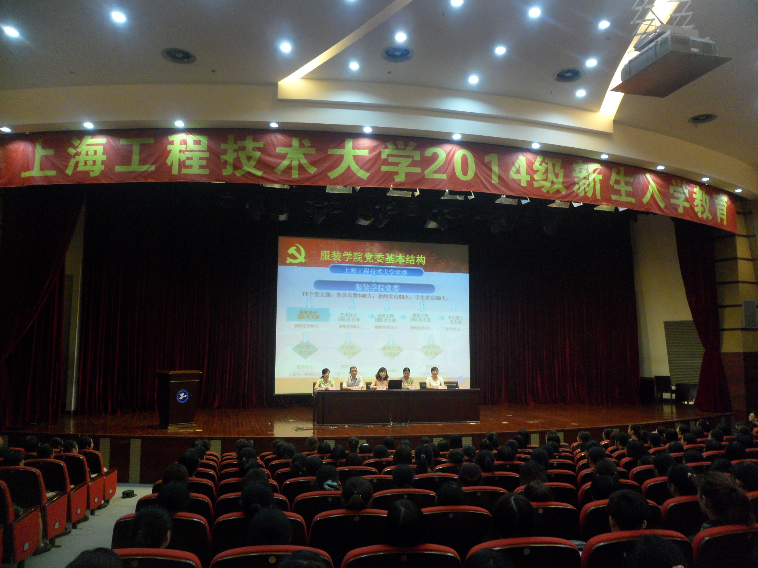 入党启蒙教育是党员教育的初始阶段,也是激发新生政治热情,积极要求进步,向党组织靠拢的关键阶段。按照校党委关于发展学生党员“早发现、早培养、早发展”的工作原则,9月5日晚18:30服装学院党委在松江校区志宏堂开展了以“坚定信念,扬帆起航”为主题的新生入党启蒙教育。出席大会的有服装学院党委书记袁蓉、中法埃菲时装设计师学院学生工作负责人、服装学院党委副书记张漪、服装学院党委副书记李扬以及服装学院党委组织员、学生党支部书记、辅导员、服装学院和中法埃菲时装设计师学院的全体2014级新生。会议由服装学院党委组织员郑艳主持。
