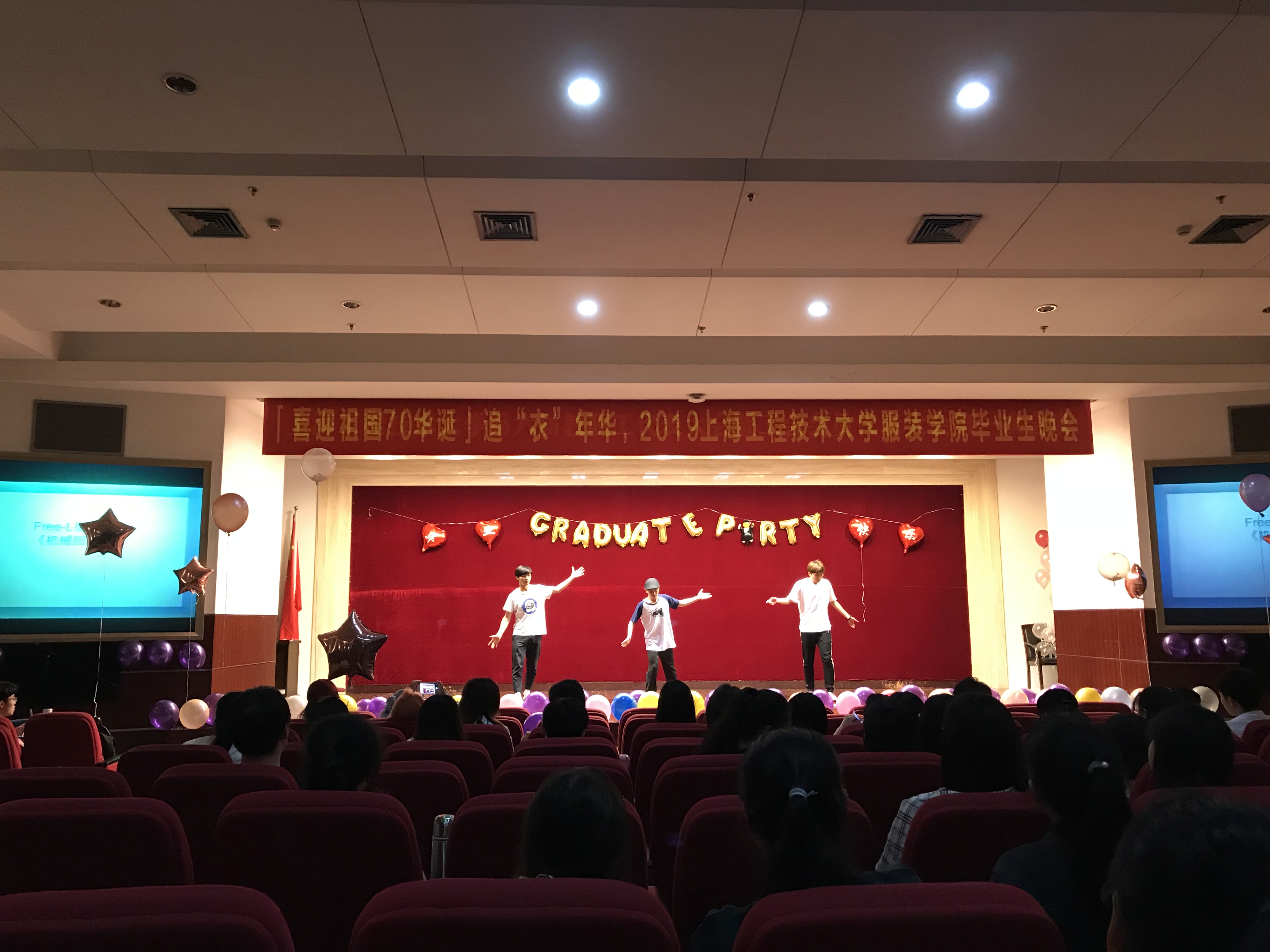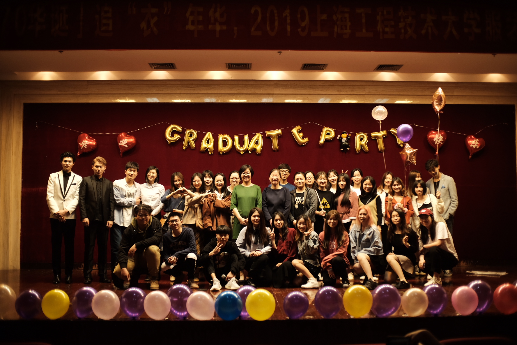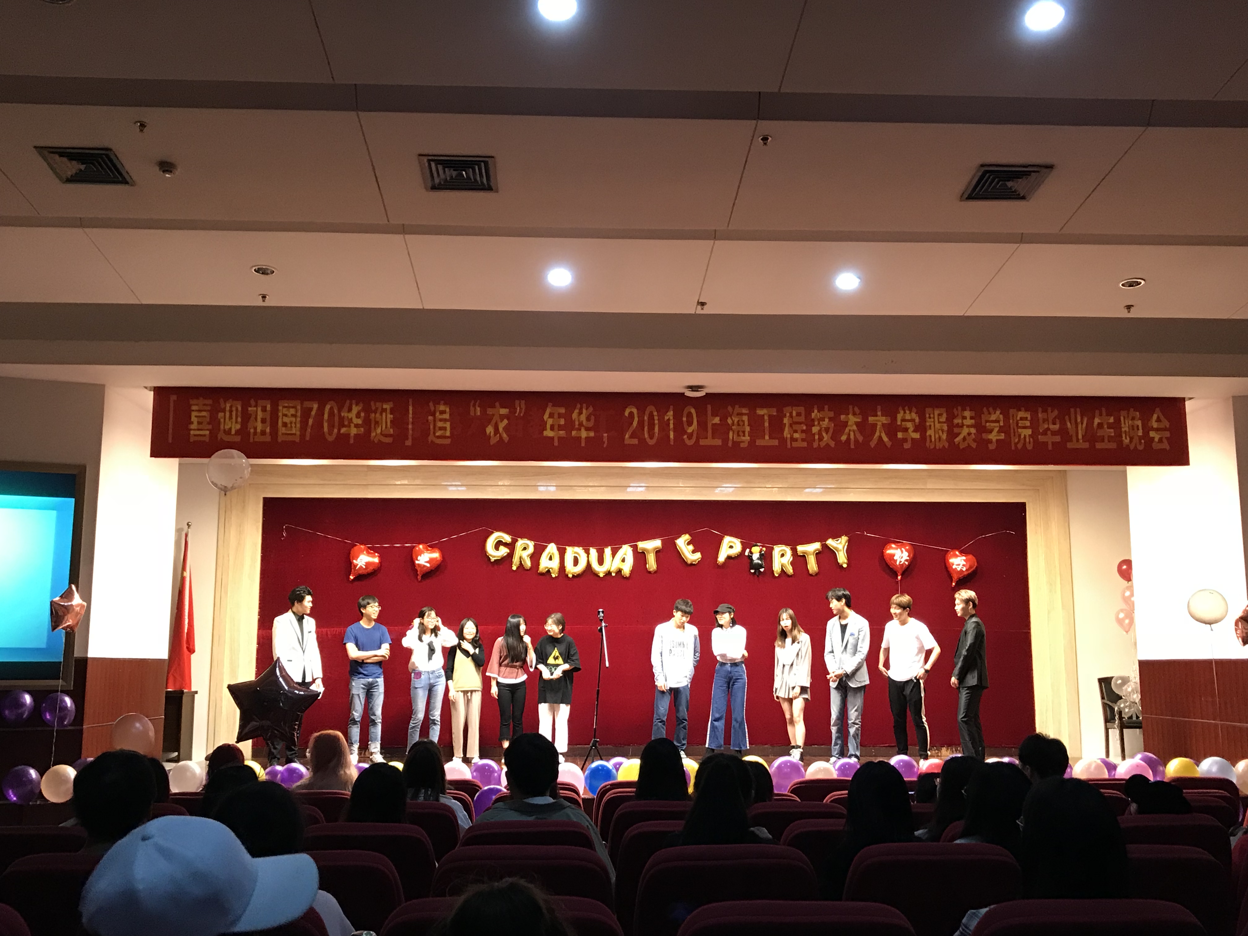 近日,服装学院在图文第二报告厅举办了“喜迎祖国70华诞,追‘衣’年华2015届毕业生毕业晚会”。服装学院党委副书记谢志霞老师、团委书记沈智莉老师、辅导员孙琴老师、董海宇老师,以及2015级毕业生们出席了此次活动。