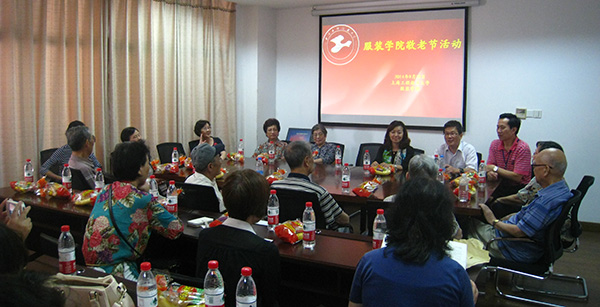 菊花吐蕊,金桂飘香;岁岁重阳,今又重阳。服装学院于9月29日在学院会议室举行第27个敬老节庆祝活动。为此学院派出客车工会主席何文元随车赴新村路、仙霞路等地接送各位离退休教工回家看看。老教师们非常重视这项一年一度的活动,大家济济一堂,话新叙旧。院党委书记袁蓉、院长胡守忠、工会主席何文元及全体离退休教师参与了庆祝活动。