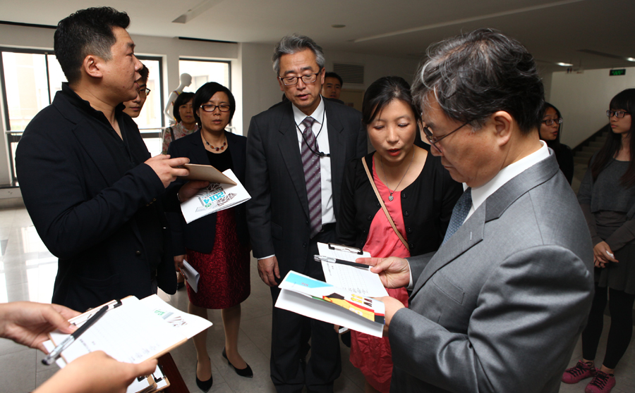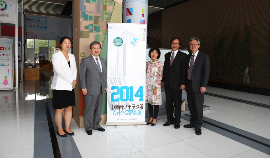 随后,Chul LEE校长一行参观了2014中韩青少年足球服装设计作品静态展,并作为评委为此次中韩青少年足球服装设计大赛评分。中韩青少年足球服装设计静态展为实题真做,主题的设定为韩国蔚山大学毕业设计课程内容,针对于5-12岁的男女学生们设计制作足球队服。9728太阳集团服装设计系组织学生设计参赛,并取得了姣好的成绩。优秀者被邀请赴韩国访问交流。