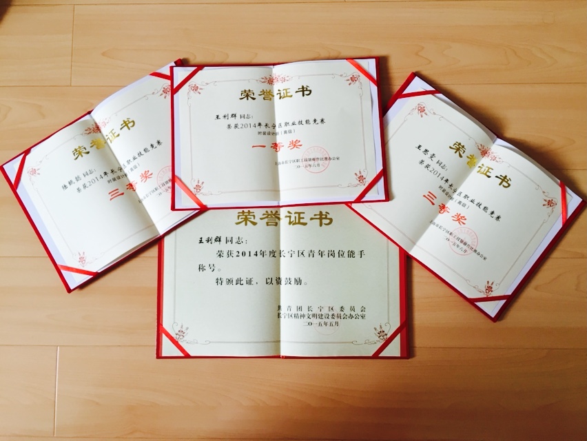 为了全面提高大学生的实践和创新能力,有力推进大学生的就业工作,我校继续教育学院和服装学院合作开办了长宁区职业技能竞赛培训班。职业技能竞赛注重的是选手的创造力和扎实的功底,必须在有限的时间内,临场发挥设计不同款式的服饰并根据考场命题要求设计制作一款时装,通过竞赛能综合考察选手的技能水平。服装学院学生积极报名参加,并屡获佳绩:王利群获时装设计师(高级)一等奖和2014年度长宁区青年岗位能手称号,陆甄懿、王思雯获得了时装设计师(高级)三等奖,服装学院荣获本次竞赛的优秀组织奖。
