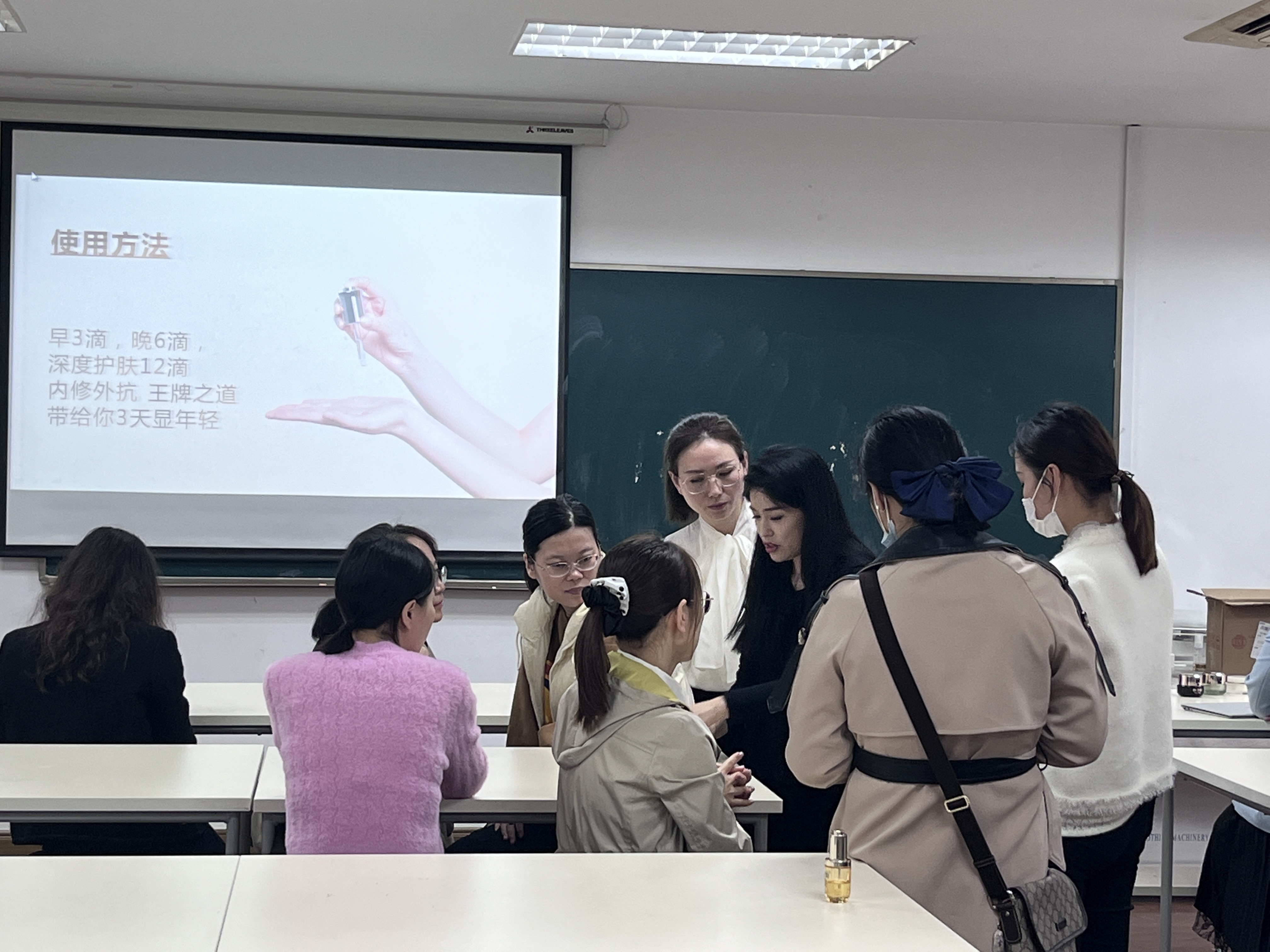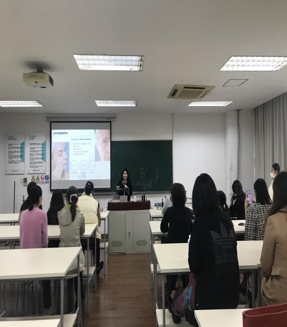 活动邀请了知名护肤美妆品牌讲师团,为女教职工带来一场专业的护肤美妆交流会,现场活动内容包括护肤知识、美妆技巧分享、现场互动体验等。活动开始,美妆讲师首先为大家科普了一下皮肤的构成,以及各种影响皮肤健康的因素,提醒大家在不同的季节、环境中应该如何保护皮肤,更好的展现出女教职工的风采和自信。并与在场的女教职工进行了互动交流,使女老师们在繁忙的教学工作中感受到温暖呵护。