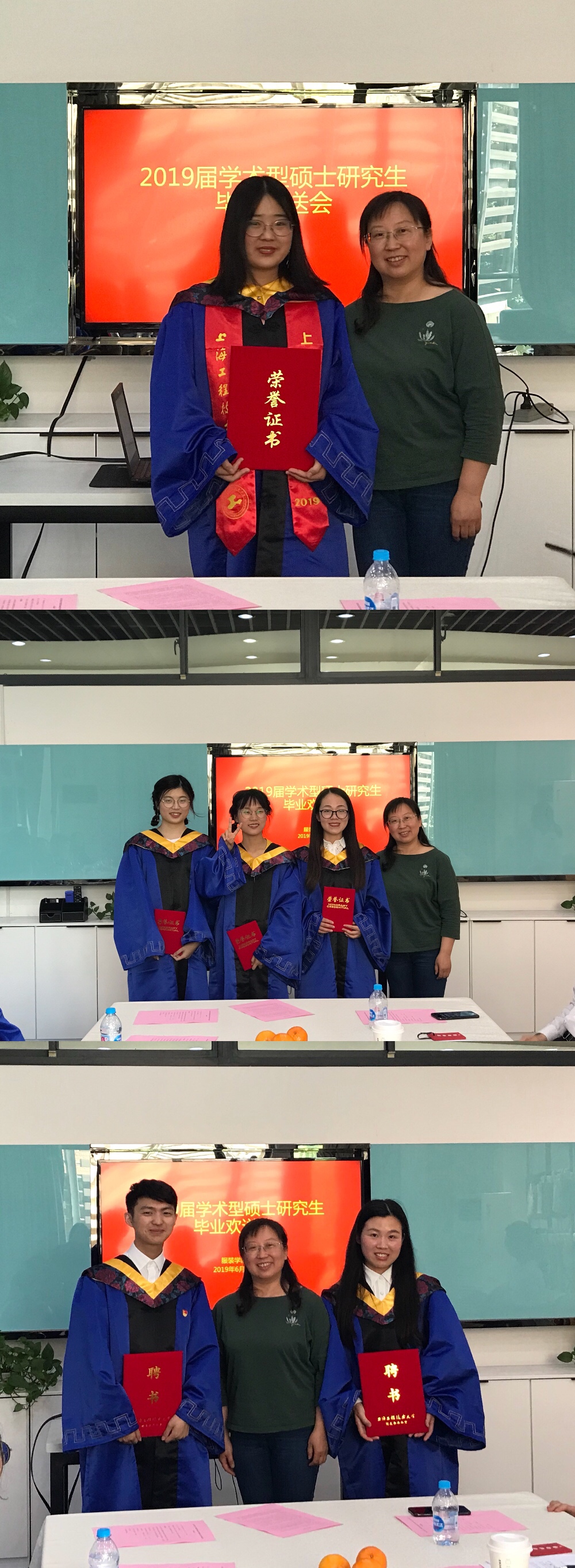 副院长沈勇总结了2019届学术型研究生所取得的各方面成果,充分肯定了同学们在学术论文、国家级奖项、成果专利以及学院工作等方面都取得的诸多成绩。沈老师向同学们的顺利毕业表示祝贺,祝福同学们能在人生中跨出好的一步,事业有成,家庭幸福。副院长李艳梅为校友联络员、校级优秀毕业生和上海市优秀毕业生颁发聘书和证书。
