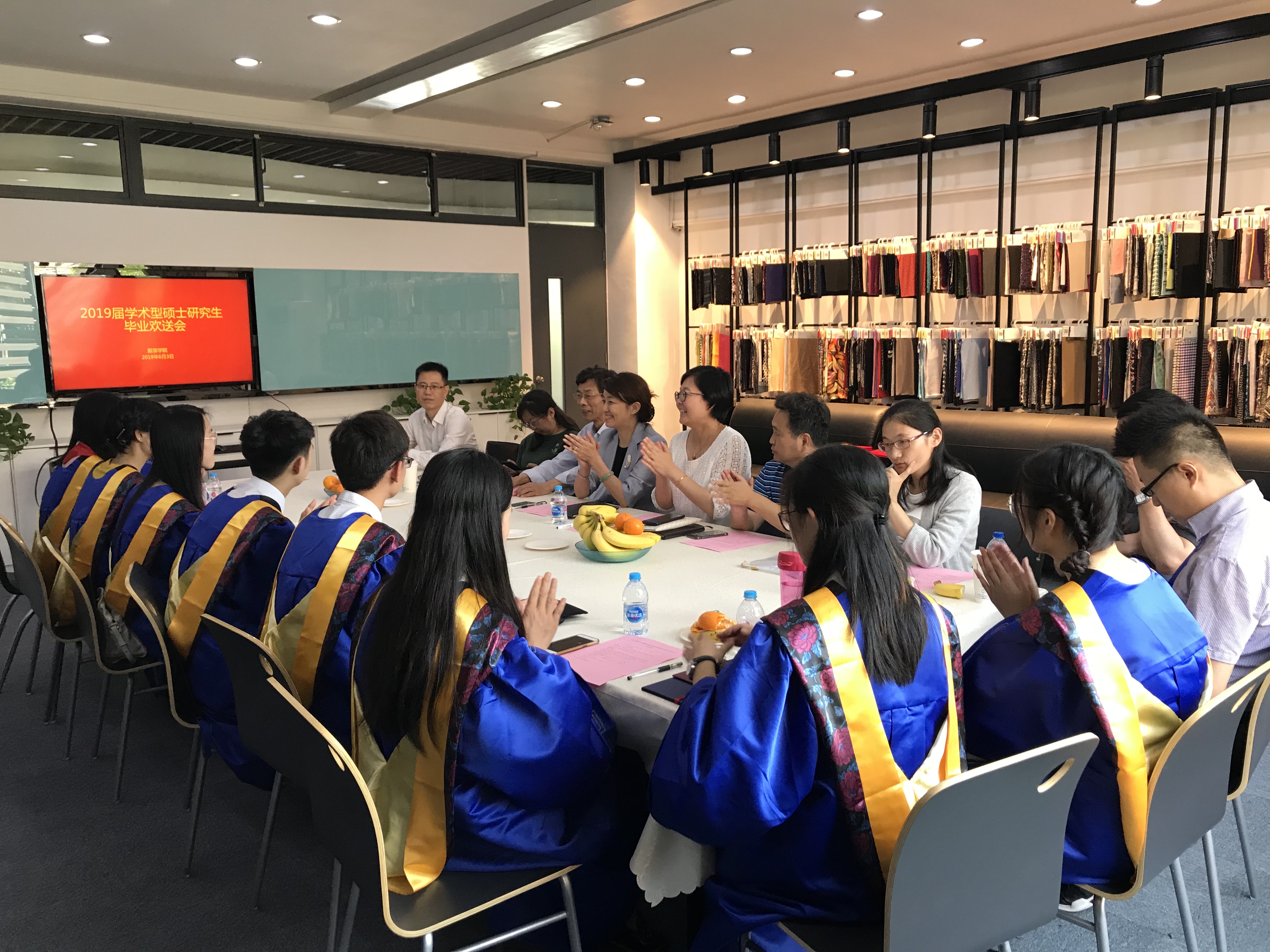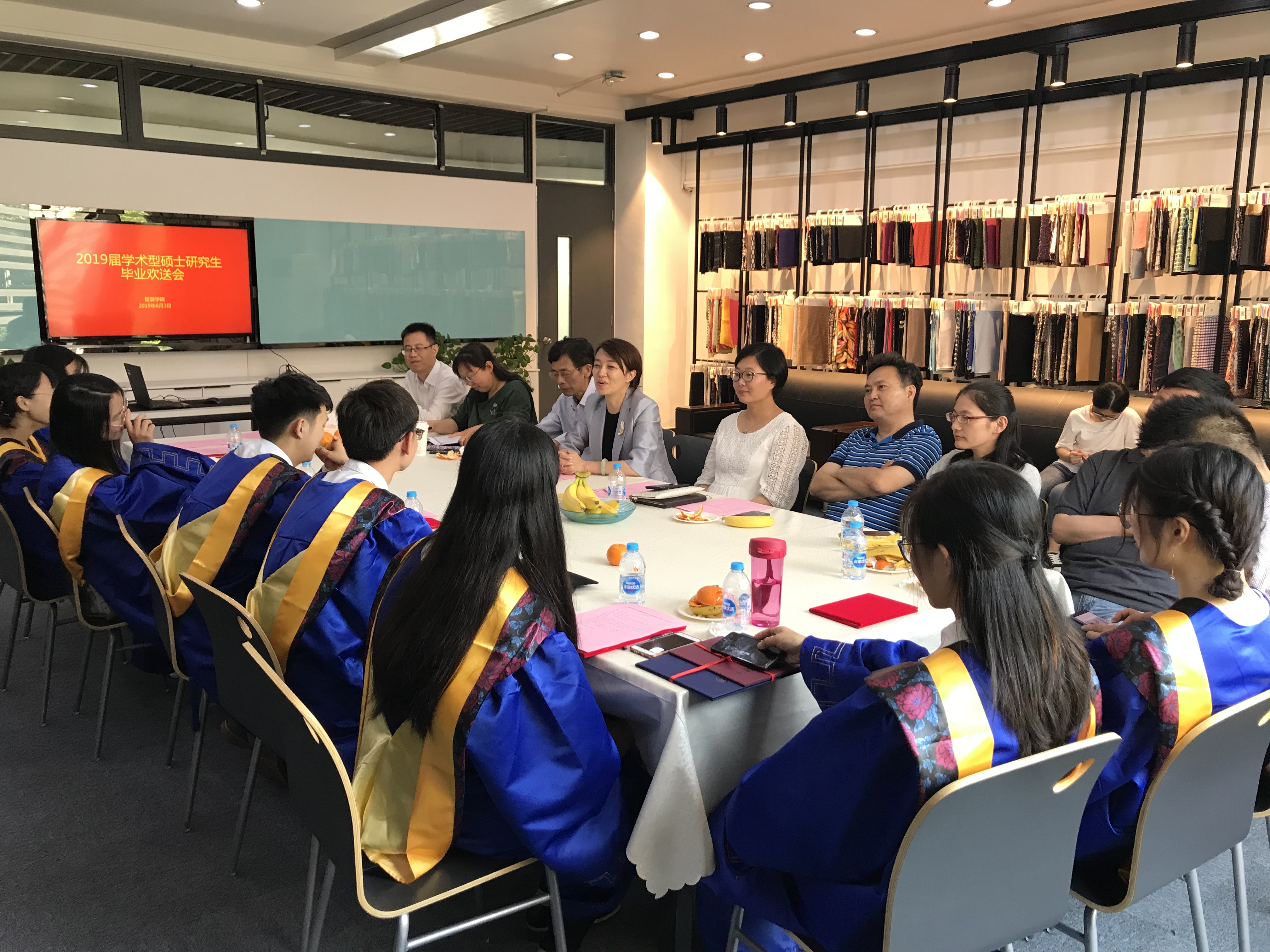 6月3日下午,服装学院在艺术楼举行2019届学术型研究生毕业欢送会。服装学院党委书记袁蓉、副书记谢志霞、副院长沈勇、李艳梅,研究生导师代表、研究生辅导员以及2019届学术型研究生代表参加会议。会议由副书记谢志霞主持。