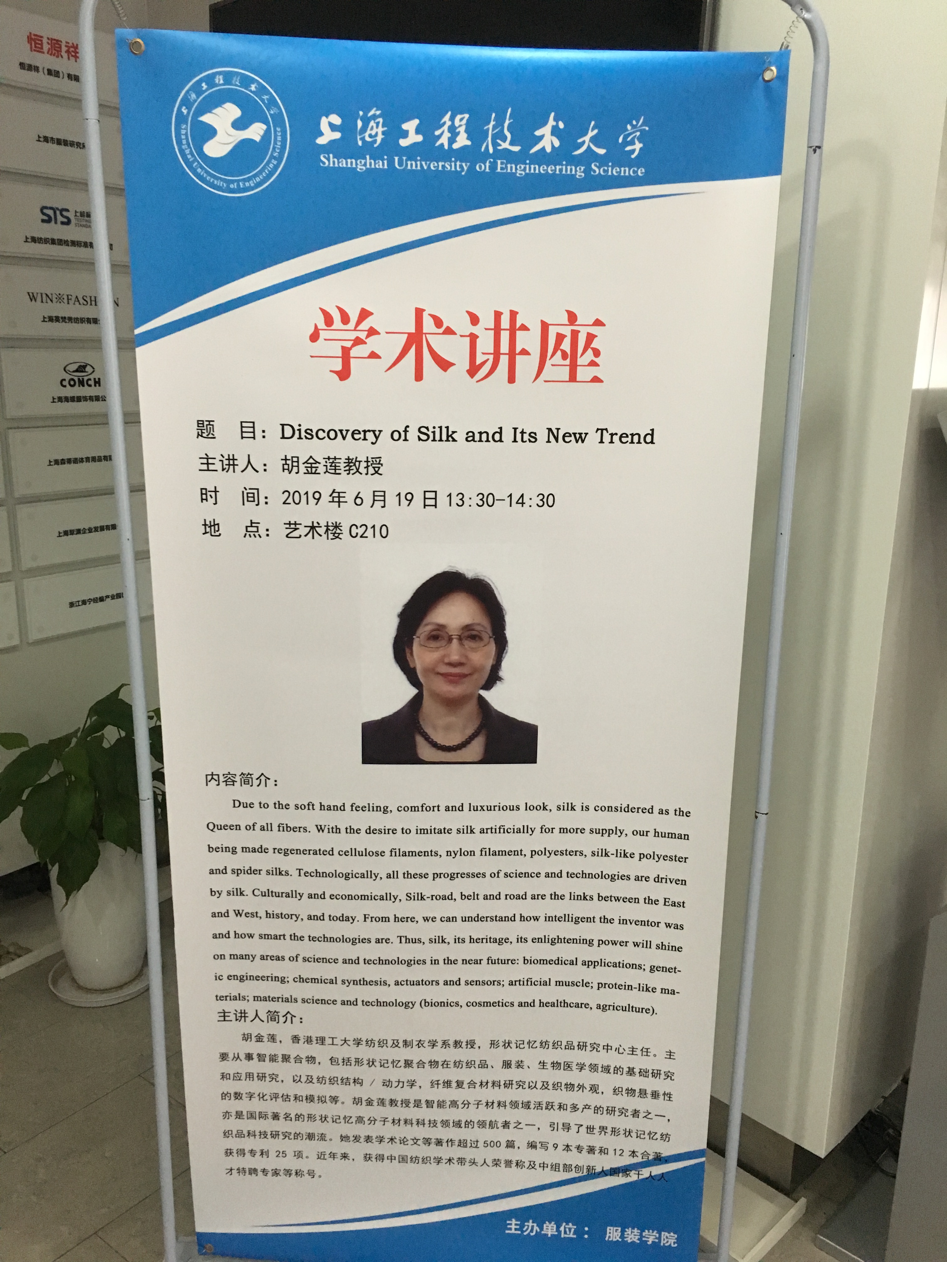 6月19日下午,9728太阳集团服装学院在艺术楼C210举办了由香港理工大学胡金莲教授做的题为Discovery of silk and its new trend 的学术讲座。此次讲座由服装学院王际平教授主持,副院长沈勇教授,纺织工程系主任辛斌杰教授,青年教师及相关专业的各级研究生参加了此次讲座。