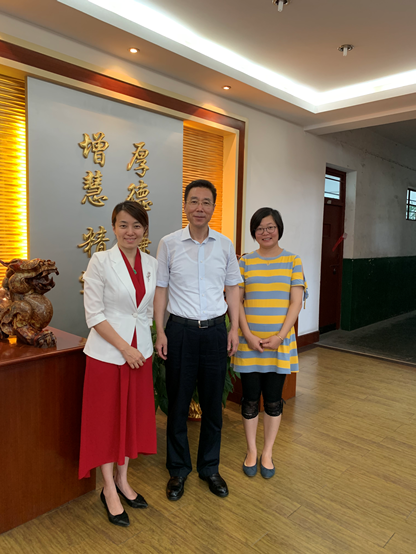 施介林校友对袁蓉秘书长和谢志霞副书记一行的到来表示热烈的欢迎,他感谢母校长期以来对校友及校友企业发展给予的关心及支持,同时,也期待有更多校企融合的方式,达到共赢发展。