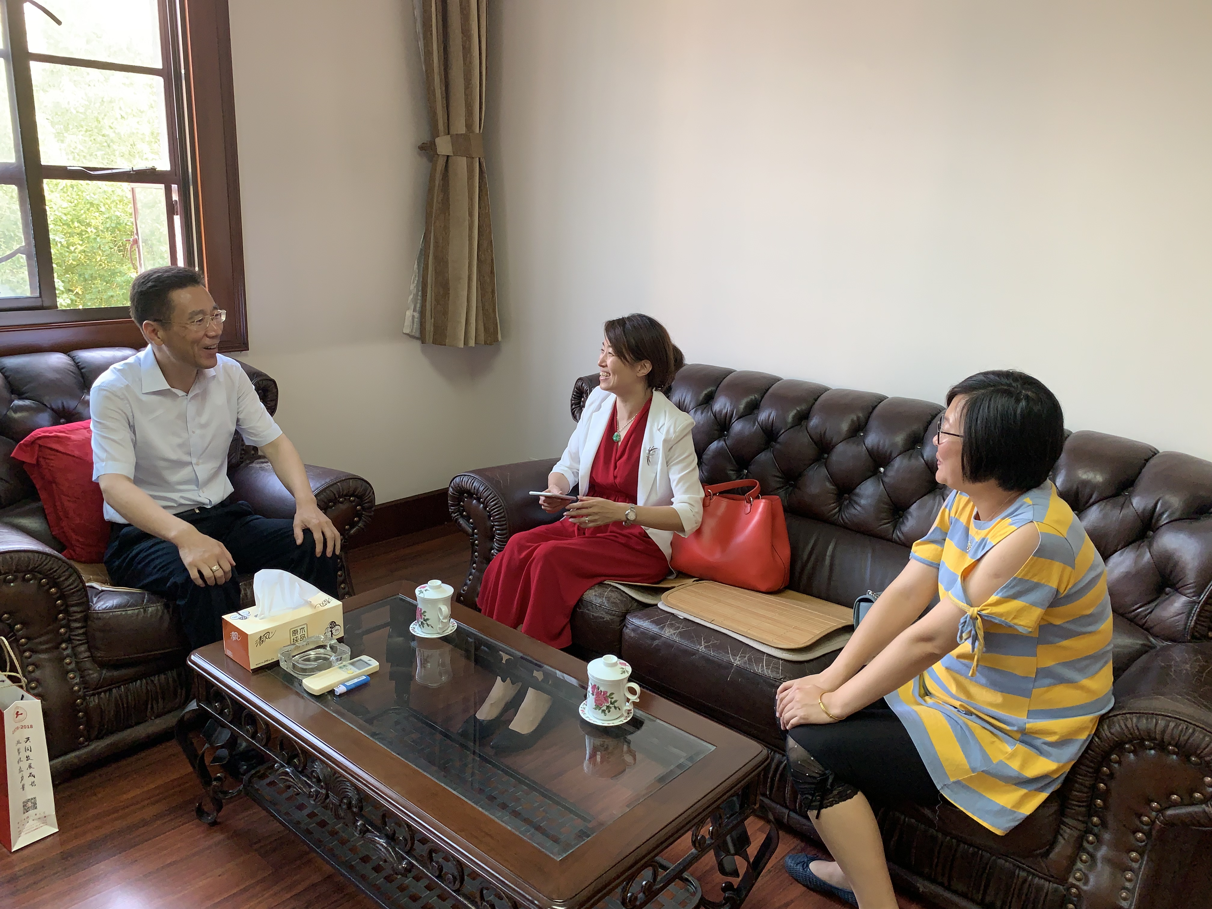 会谈中,袁蓉秘书长、谢志霞副书记向施介林校友介绍了我校的发展情况以及服装学院的基本情况,对施董长期以来关心、支持学校及学院的发展表示感谢,期望双方将来在学生就业、产学合作、创业教育等方面有更多深入的合作和创新。