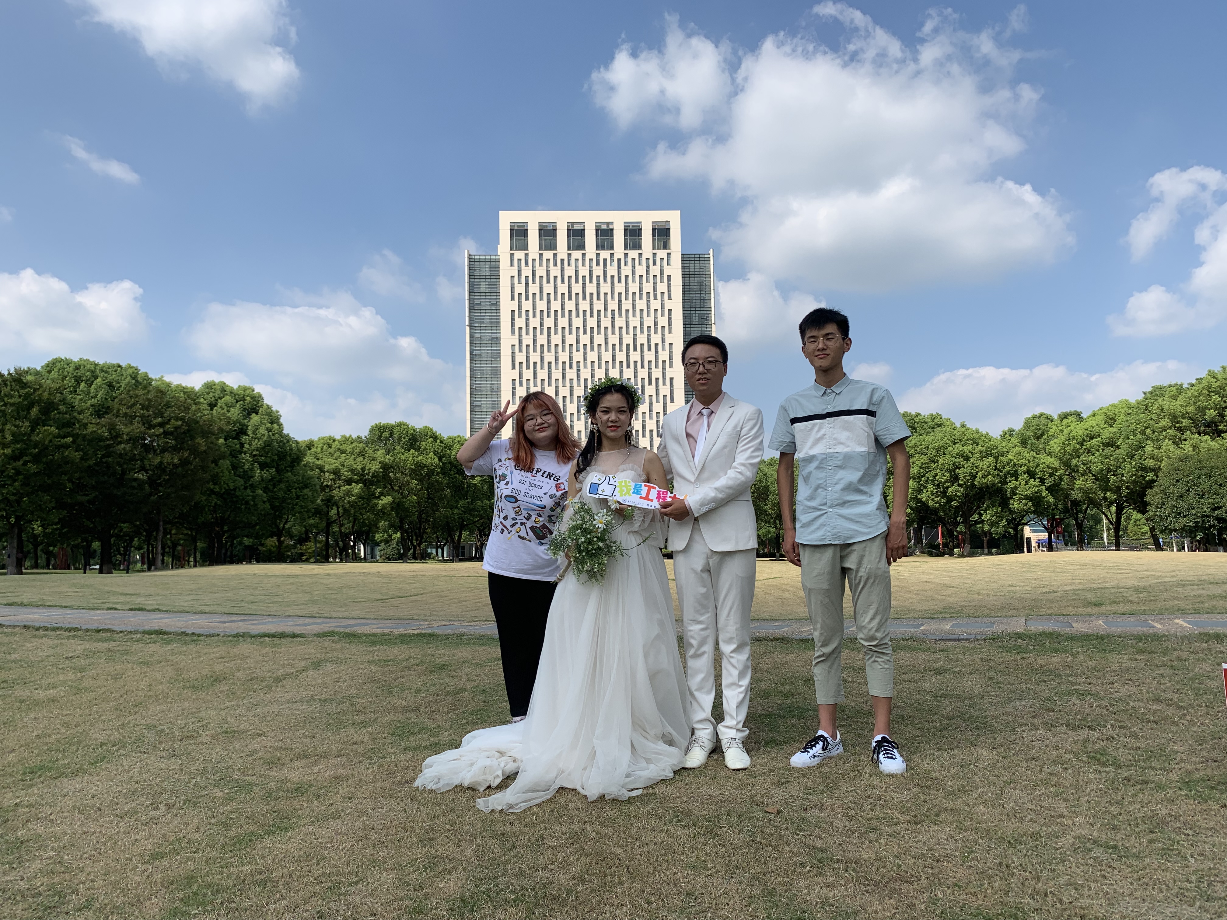 9月13日,服装学院2016级研究生校友,东华大学2019级在读博士李杰聪,于中秋佳节来我校松江校区拍摄婚纱照。服装学院校友工作组金怡、邓红梅负责接待工作,他们对李杰聪校友的到来表示欢迎,祝其新婚快乐,赠送校友婚戒一对,并合影留念。