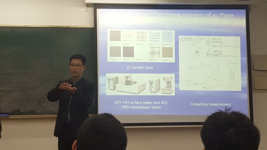 2016/3/17晚6点,服装学院辛斌杰教授面向纺织工程15届学生举行关于“数字图像处理技术在纺织领域的应用”的专题讲座,通过介绍教师的科研工作内容来加强学生对纺织科学与工程专业的了解和认识。辛斌杰教授着重围绕“纤维外观与结构测试”、“纱线外观性能测试”、“非织造材料表面分析”、“织物表面起球等级的评估”四个方面,从计算机图像处理的基本概念、实现方法、装置开发、算法研究逐次展开介绍,深入浅出的剖析数字化图像处理技术的优缺点和未来的发展趋势。辛斌杰教授结合自己的个人经历、研究项目、装备开发,以2维图像向3维图像的升级研究作为主线,引出当前本领域内的研究热点和存在问题,阐明计算机视觉在未来的纺织工业4.0,中国智造2025、互联网+等新兴技术形态中的重要性,给同学们带来一次别开生面的“类人脑科技”的学术讲座。