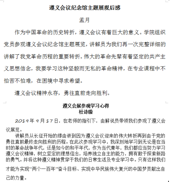 9月中旬“红色的足迹,行进的伟业——上海市教育系统庆祝中华人民共和国成立70周年主题巡展”暨遵义会议纪念馆主题展览在我校开幕。服装学院党委各党支部积极响应学校开展“不忘初心、牢记使命”主题教育要求,推进革命传统教育、爱国主义教育和社会主义核心价值观教育,开展主题党日分三批次组织师生党员参观。服装学院党委纺织工程党支部、艺术设计党支部、服装设计与工程党支部等教工党支部,研究生第一、第二、第三党支部等学生党支部,提前预约、精心组织,并于会后开展交流讨论、撰写学习体会。