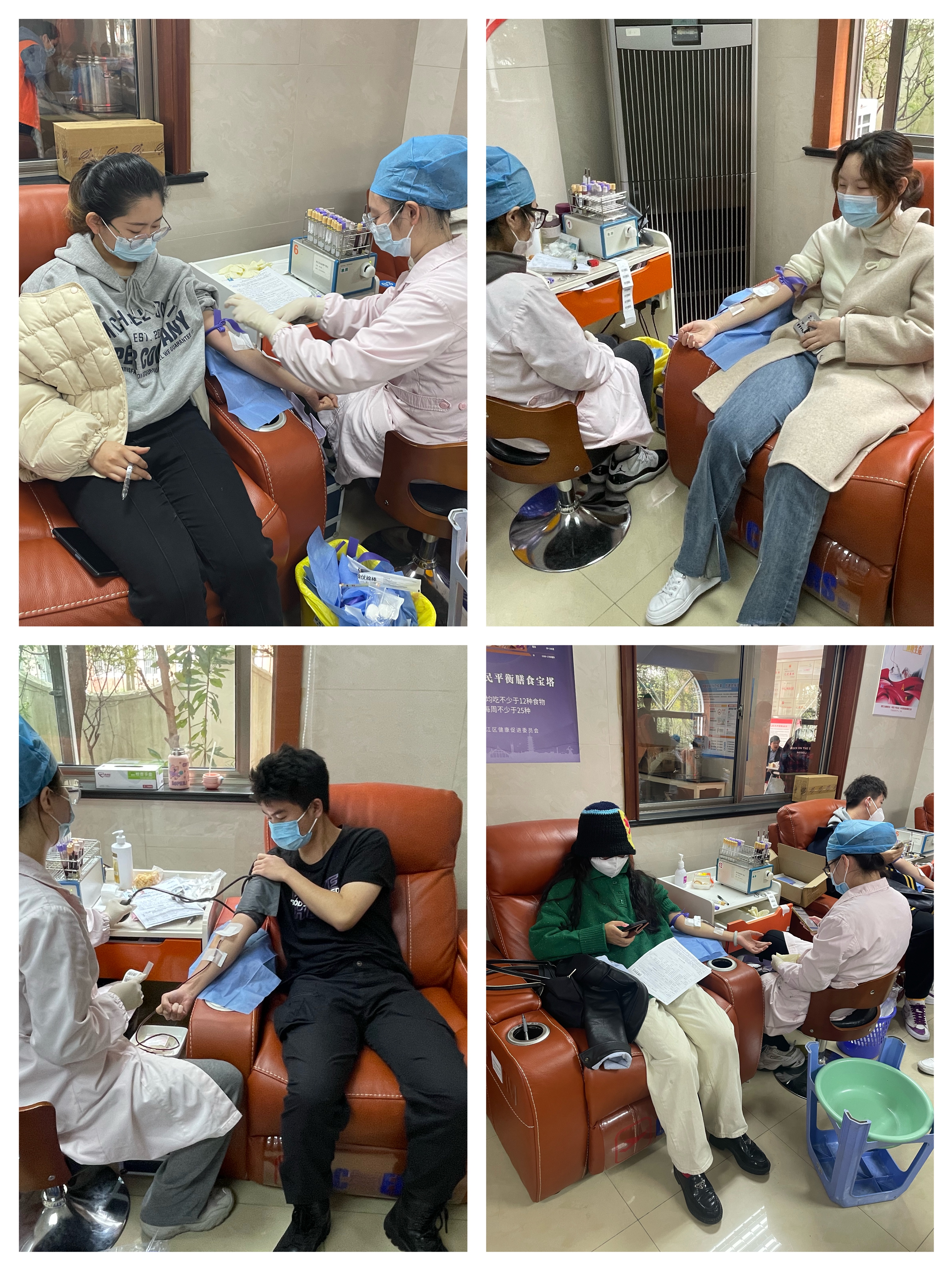 在献血现场,大家在工作人员的指导下,在志愿者的积极协助下,有序地填表、体检、化验、抽血。在一片轻松而愉快的氛围中,他们完成了献血这一光荣之举。通过这次无偿献血活动,大家切身感受到了奉献爱心带来的温暖与幸福,感受到了青年学生的责任与使命。