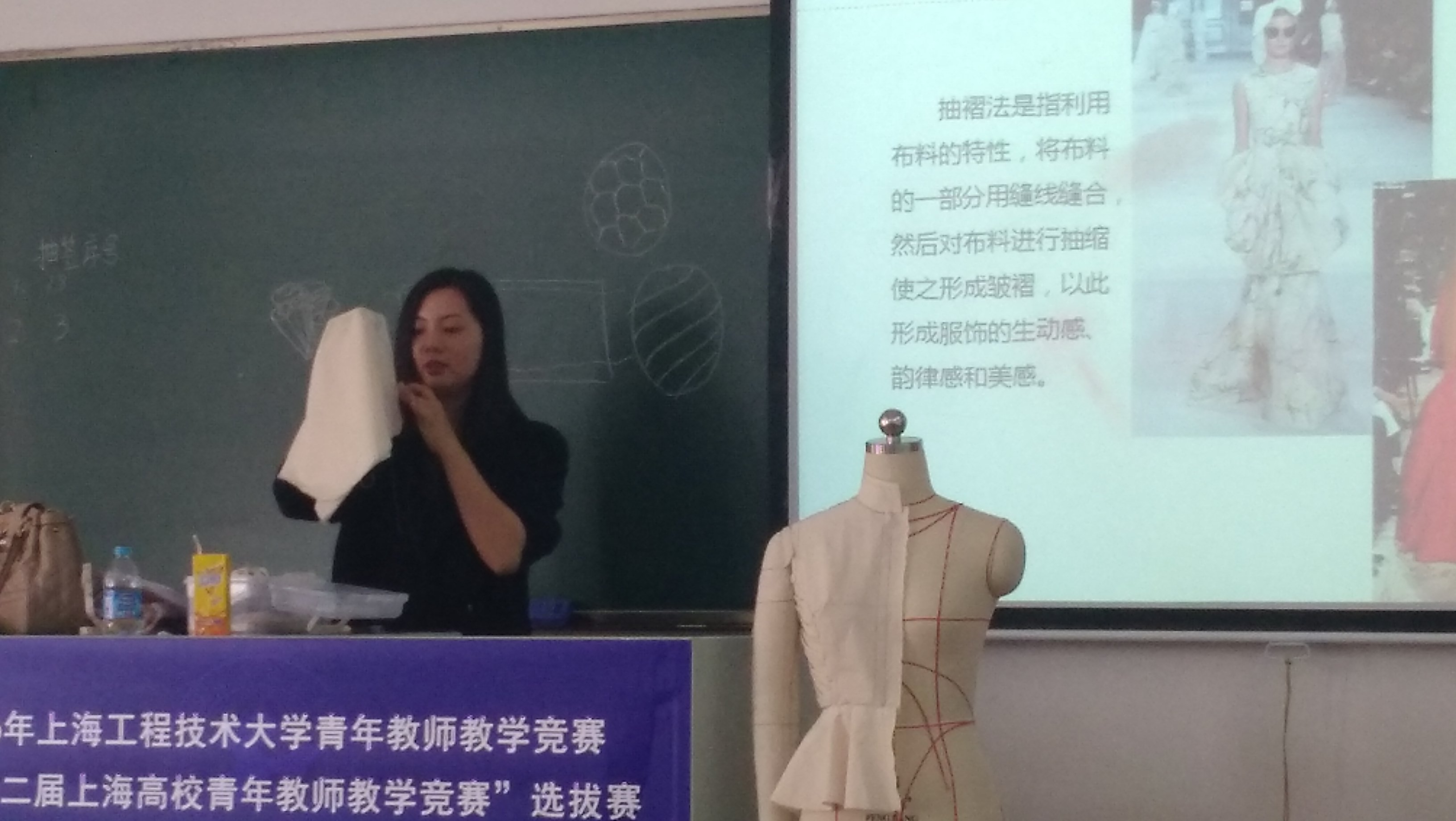 此次教学竞赛以“青春在讲台”为主题,以“上好一门课”为竞赛理念,以加强青年教师教学基本功和能力训练为重点。选手在报名前要完成参赛课程20个学时的教学设计和与之相对应20个教学节段(即20分钟的课堂教学内容)的PPT;竞赛的程序相当严格,选手参赛前一天抽签确定本人的参赛顺序;比赛前半小时选手现场抽签确定本人参赛的具体教学节段;课堂教学结束后,选手还要现场进行教学反思,并与评委互动,服装学院选派的胡筱、孙琰、刘玮、刘若琳、王燕珍等五位青年教师根据竞赛要求,花费了相当大的时间和精力进行备课,力争取得此次竞赛的好成绩。