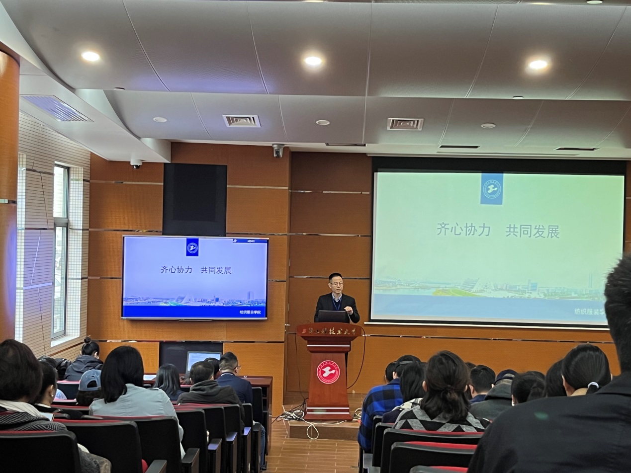 学院党委副书记谢志霞从五个方面回顾了过去一年学院学生工作的情况,2023年将从价值引领、教育管理、品牌工作、队伍建设、学风管理和完全稳定等六个方面开展工作。副院长李春晓指出本年度将从专业和课程建设、教学资源建设、教学成果、教学改革等方面着力,对接数字化纺织服装技术革命,培养适应产业需求的复合应用型人才。副院长曲洪建从科研创新团队组建、纵向项目申报、横向项目申报、科技成果转化、科研平台建设、对外合作交流等工作进行了部署和安排。副院长徐丽慧对标纺织科学与工程博士学位授权点申报条件对学院目前学科的基本情况进行了梳理,总结目前存在的主要问题及后续改进的方案。